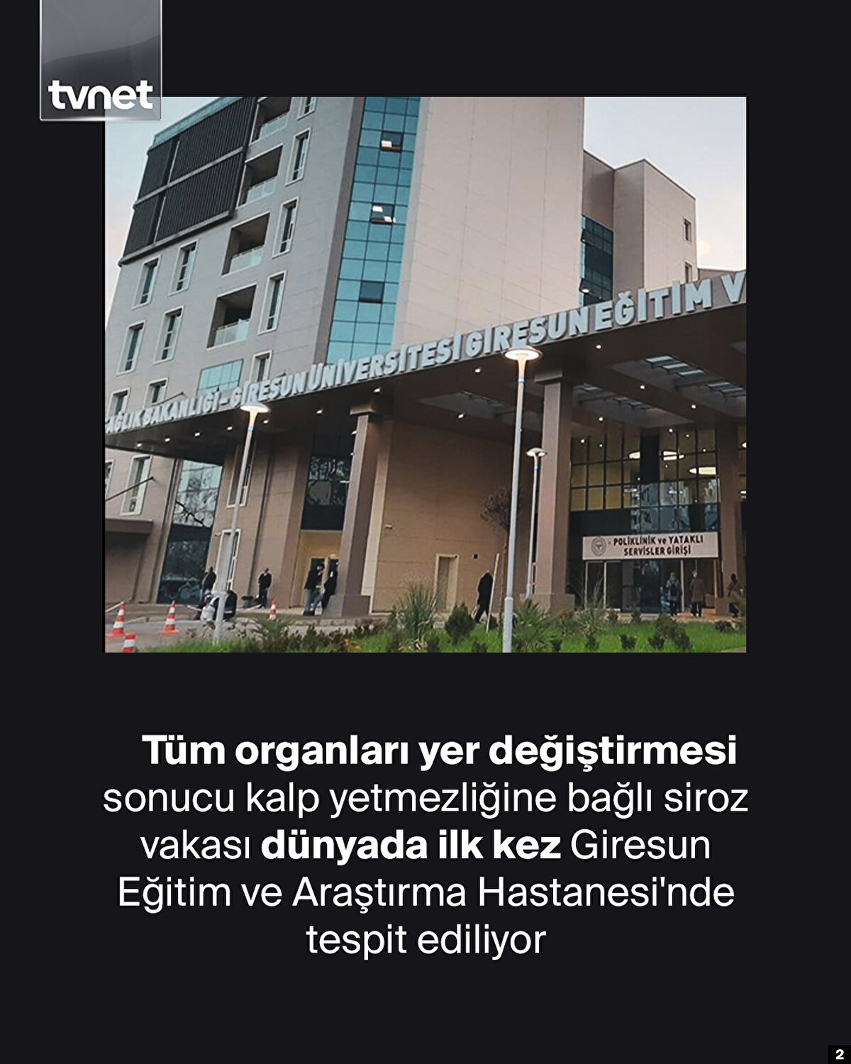 Giresun'da bir hastada görülen tüm organların yer değiştirmesine bağlı siroz hastalığı vakası sadece Türkiye'de değil, tüm dünyada bir ilki temsil ediyor. Vaka Giresun Eğitim ve Araştırma Hastanesi doktorlarının tespiti üzerine "Giresun Sendromu" adıyla tıp literatürüne geçti.