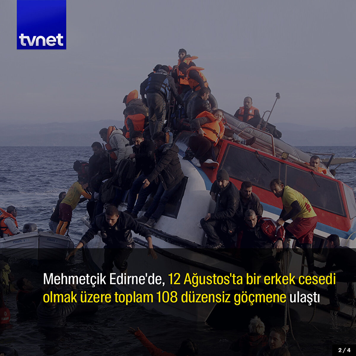 Mehmetçik Edirne'de, 12 Ağustos'ta bir erkek cesedi olmak üzere toplam 108 düzensiz göçmene ulaştı. Adil bir göç politikası uyguladığını savunan Yunanistan, Ege'deki çocuklar dahil göçmenleri geri itmeye devam ediyor; botları batırma teşebbüsünde bulunarak çevreye ateş ediyor.