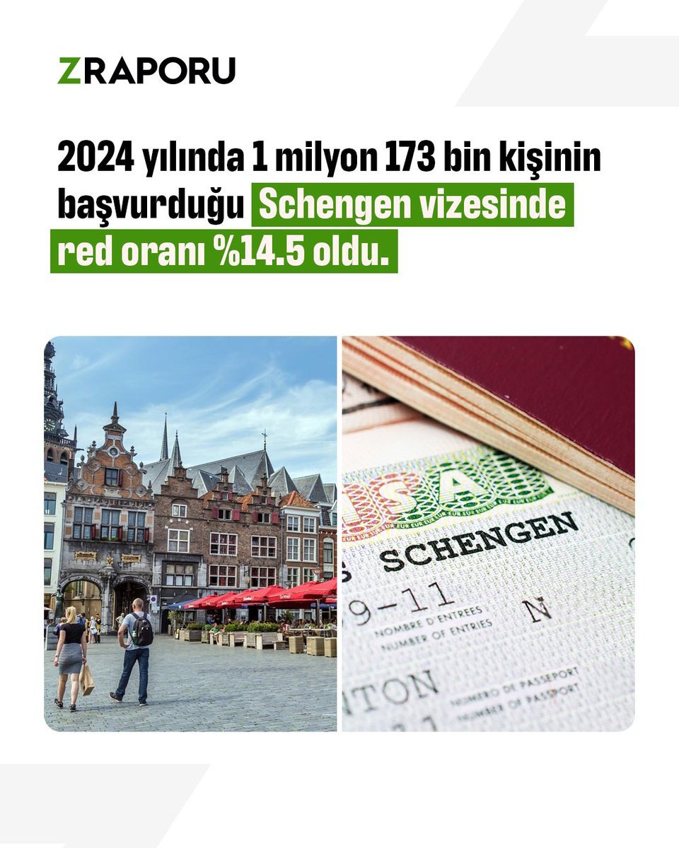 2024 yılı schengen vize istatistiklerine göre Türkiye'den 1.173.917 kişi vize başvurusunda bulundu. 2022: 778.000 başvuruda ret %15 2023: 1.056.000 başvuruda ret %16.1 2024: 1.173.917 başvuruda ret %14.5