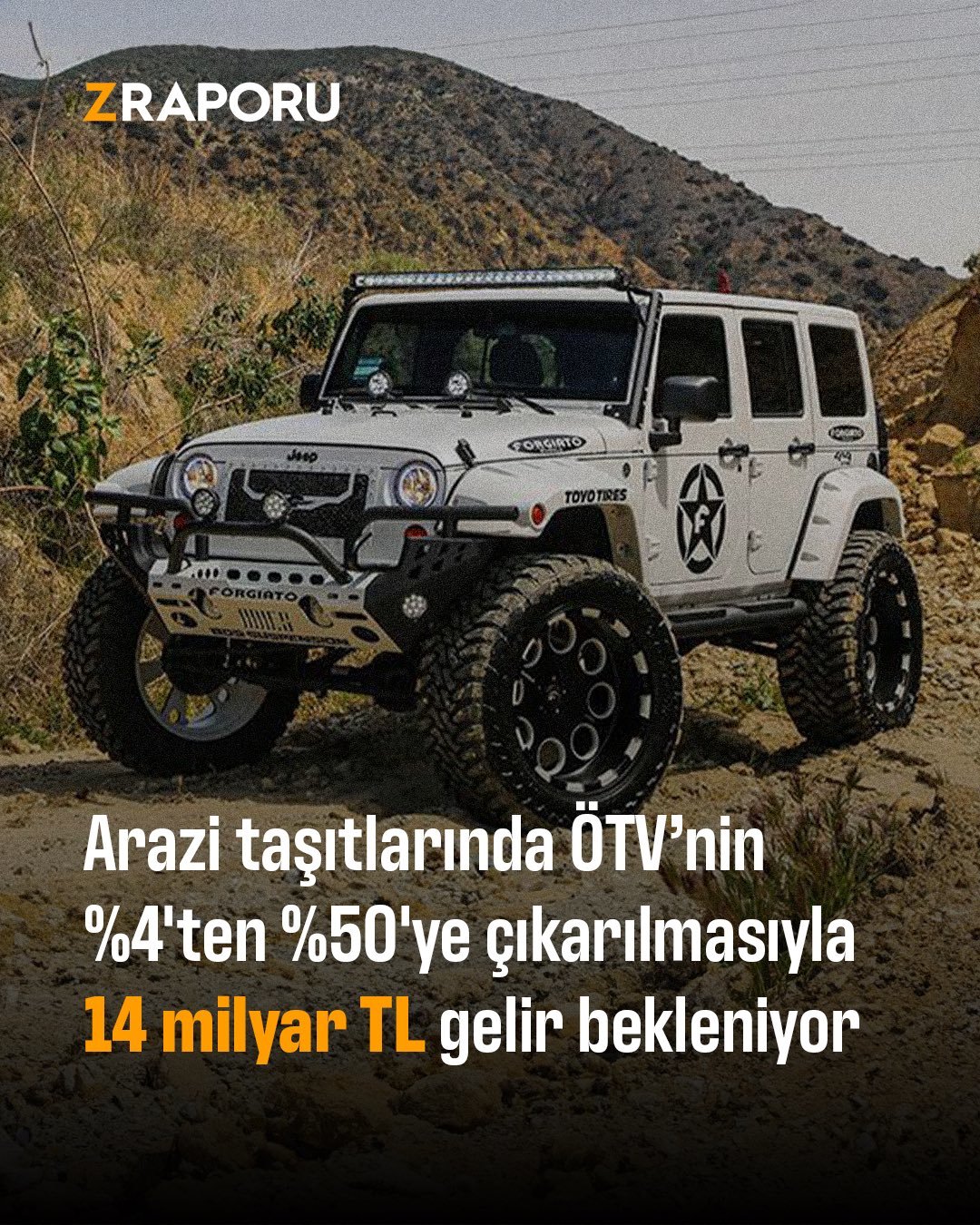 Yasa teklifiyle arazi taşıtlarının ÖTV oranı yüzde 4'ten yüzde 50'ye çıkarılıyor Mevcut durumda arkası kasa olan Range Rover, Amarok gibi lüks 4x4'lerden %4 oranında ÖTV alınıyordu Yapılacak değişiklikle birlikte yıllık 14 milyar liralık gelir bekleniyor