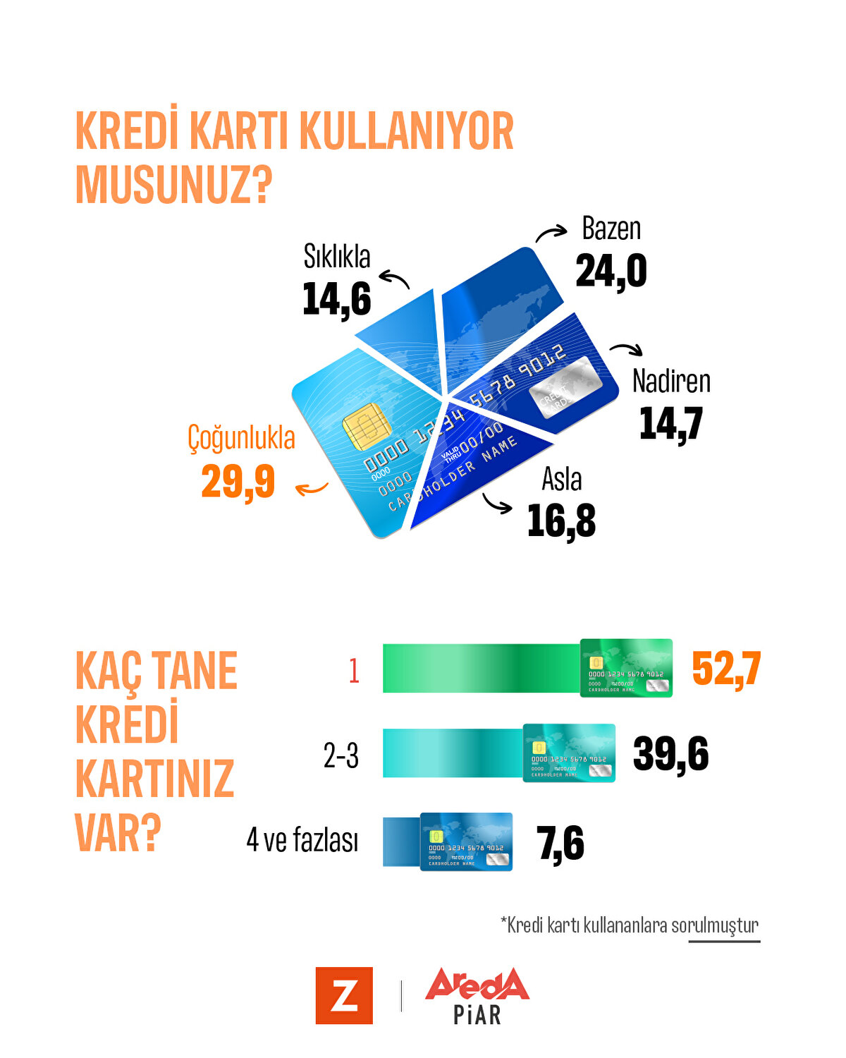 Areda Piar araştırma şirketi, Türkiye genelinde 1.100 kişinin katılımıyla 'kredi kartı' araştırması yaptı