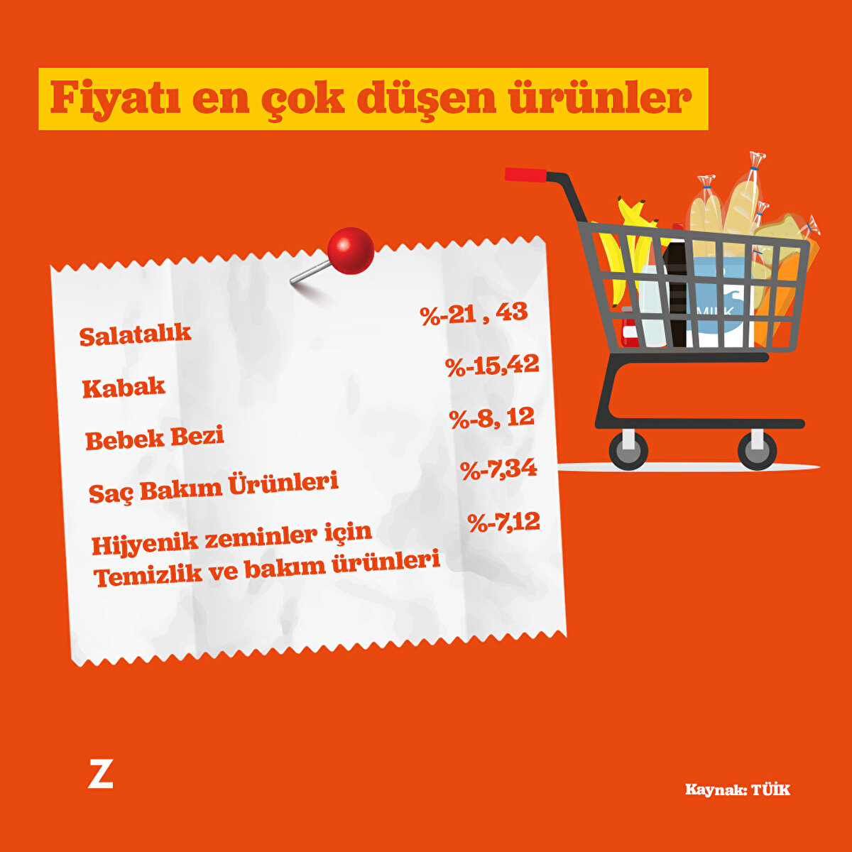 Bir önceki aya göre fiyatı en çok artan ve düşen ürünler