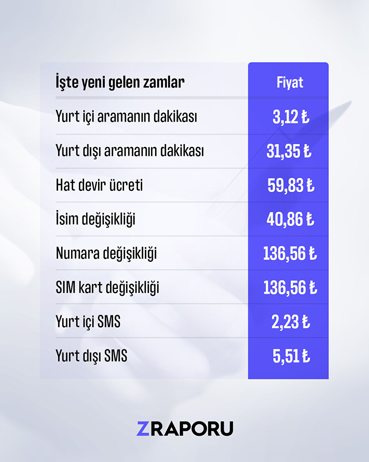 Bilgi Teknolojileri ve İletişim Kurumu (BTK), cep telefonu tarifelerine zam uyguladı. Yeni tarifeyle birlikte yurt içi aramanın dakikası 3,12 TL'ye yükseldi.