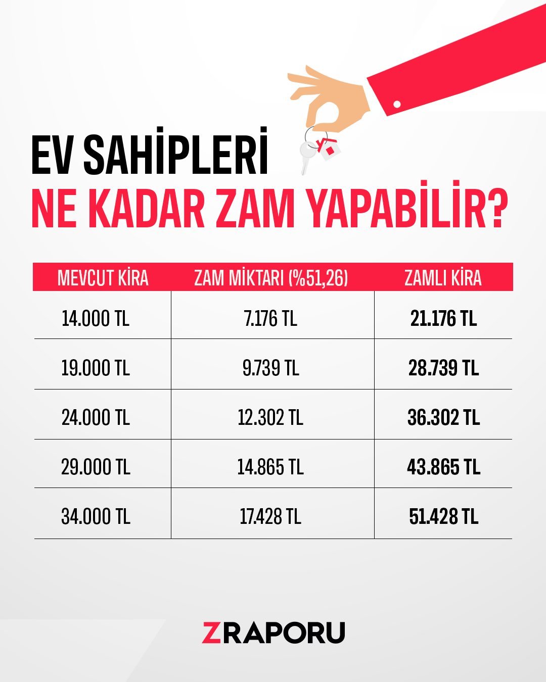 Mart ayı enflasyonuyla birlikte ev sahiplerinin yapabileceği zam oranı da belli oldu. Buna göre ev ve iş yeri sahipleri Nisan ayında en fazla %51,26 oranında zam yapabilecek