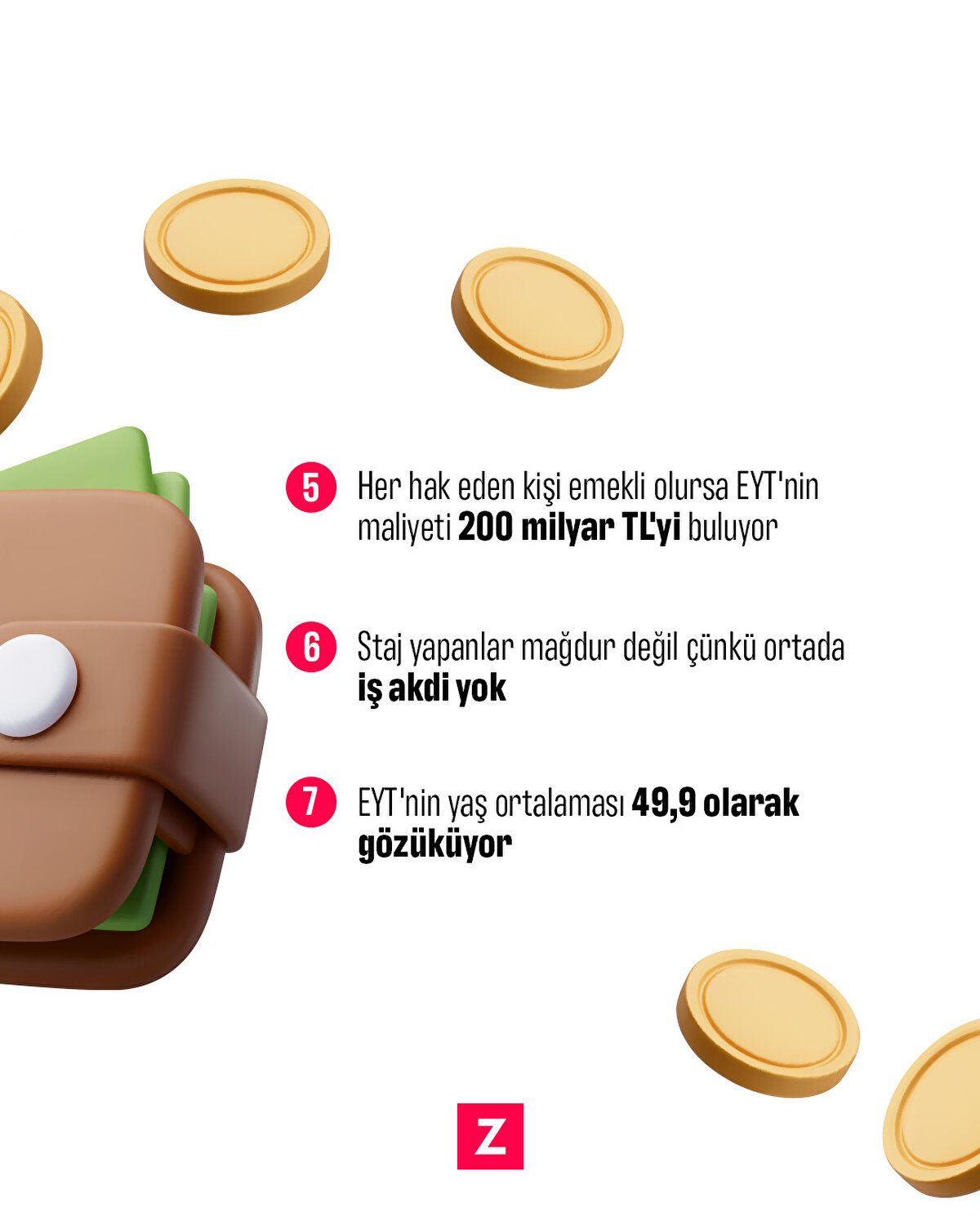 EYT ile ilgili düzenlemenin ayın sonunda plan ve Bütçe Komisyonu'na gidebileceğini ifade eden Çalışma ve Sosyal Güvelik Bakanı Vedat Bilgin, "İlk aylıklar Şubat ya da Mart'ta bağlanabilir" dedi. Bilgin, staj sigortasının EYT için başlangıç olmayacağını kesin bir dille aktarırken ortalama maaşların 13 bin lira olacağını da söyledi.