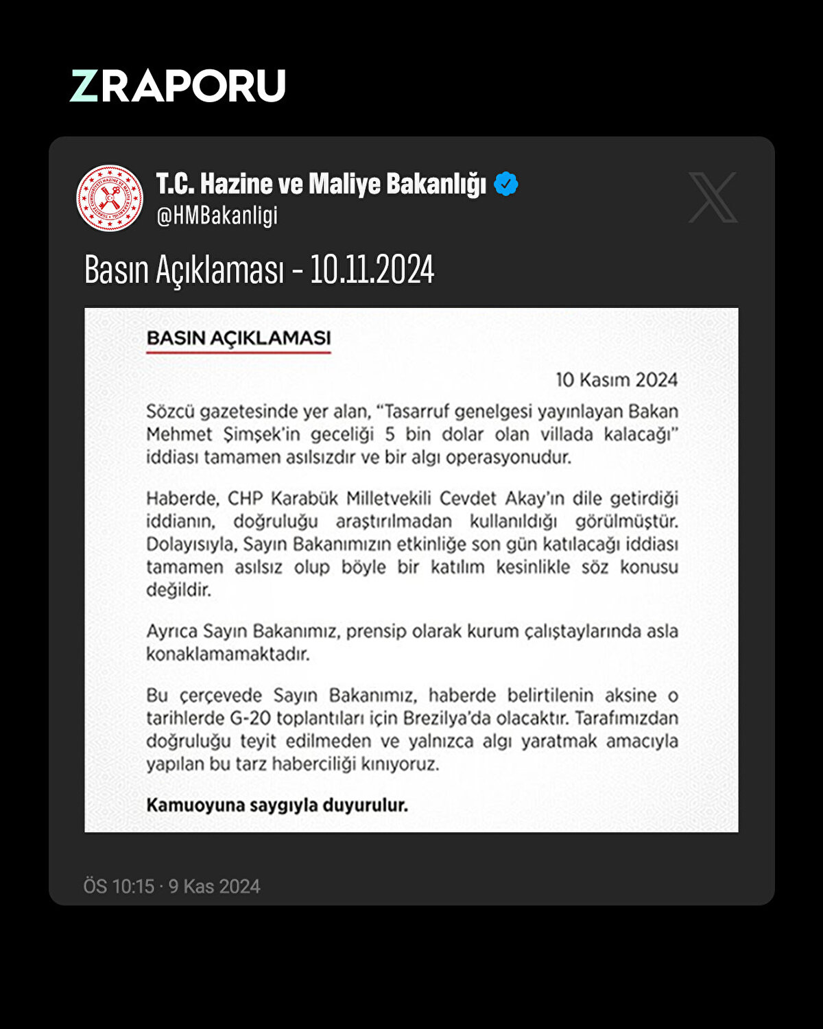 📌Hazine ve Maliye Bakanlığı, Bakan Şimşek'in geceliği 5 bin dolar olan villada kalacağı iddialarını yalanladı