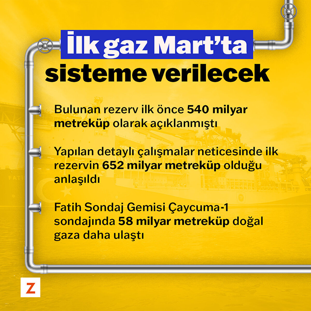 Enerji ve Tabii Kaynaklar Bakanı Dönmez, Karadeniz'deki yeni doğalgaz rezervine ilişkin açıklama yaptı. Bakan Dönmez, karada gazı işleyecek kara işleme tesisinin yüzde 85 oranında tamamlandığını ve ilk gazı mart sonu sisteme vereceklerini söyledi.