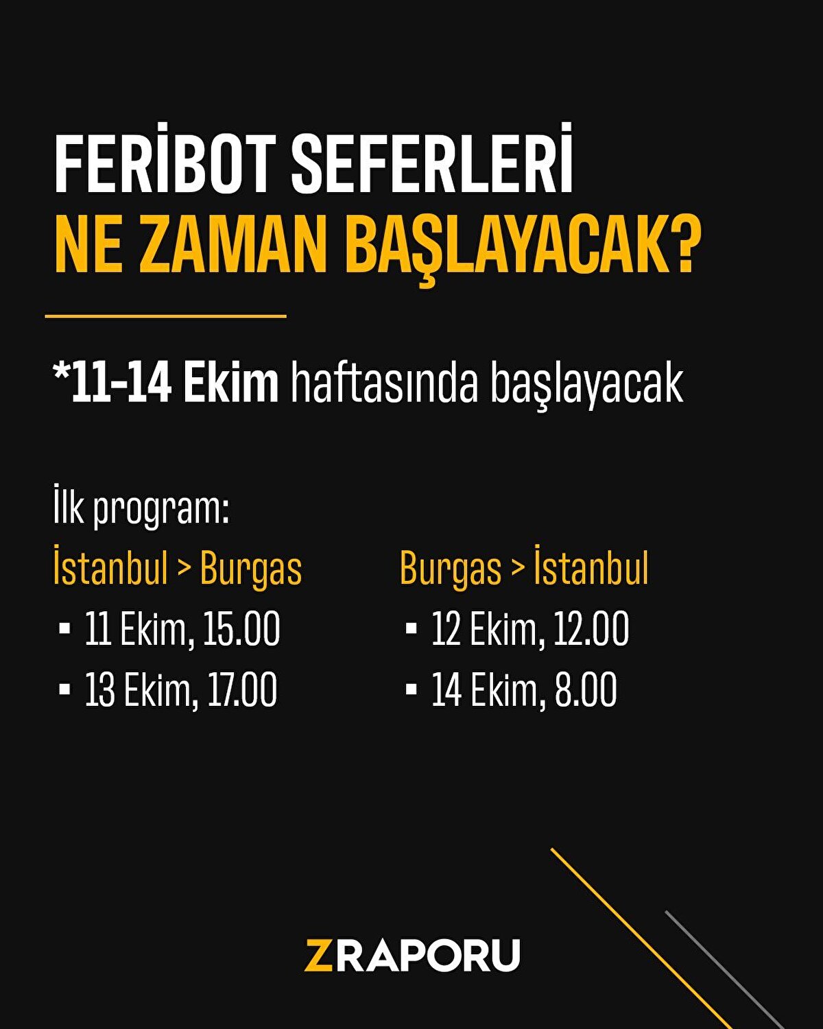 İstanbul ile Bulgaristan arasında yapılacak feribot seferleri 11-14 Ekim haftasında başlıyor; detayları sizin için hazırladık. Görmek için sola kaydırın