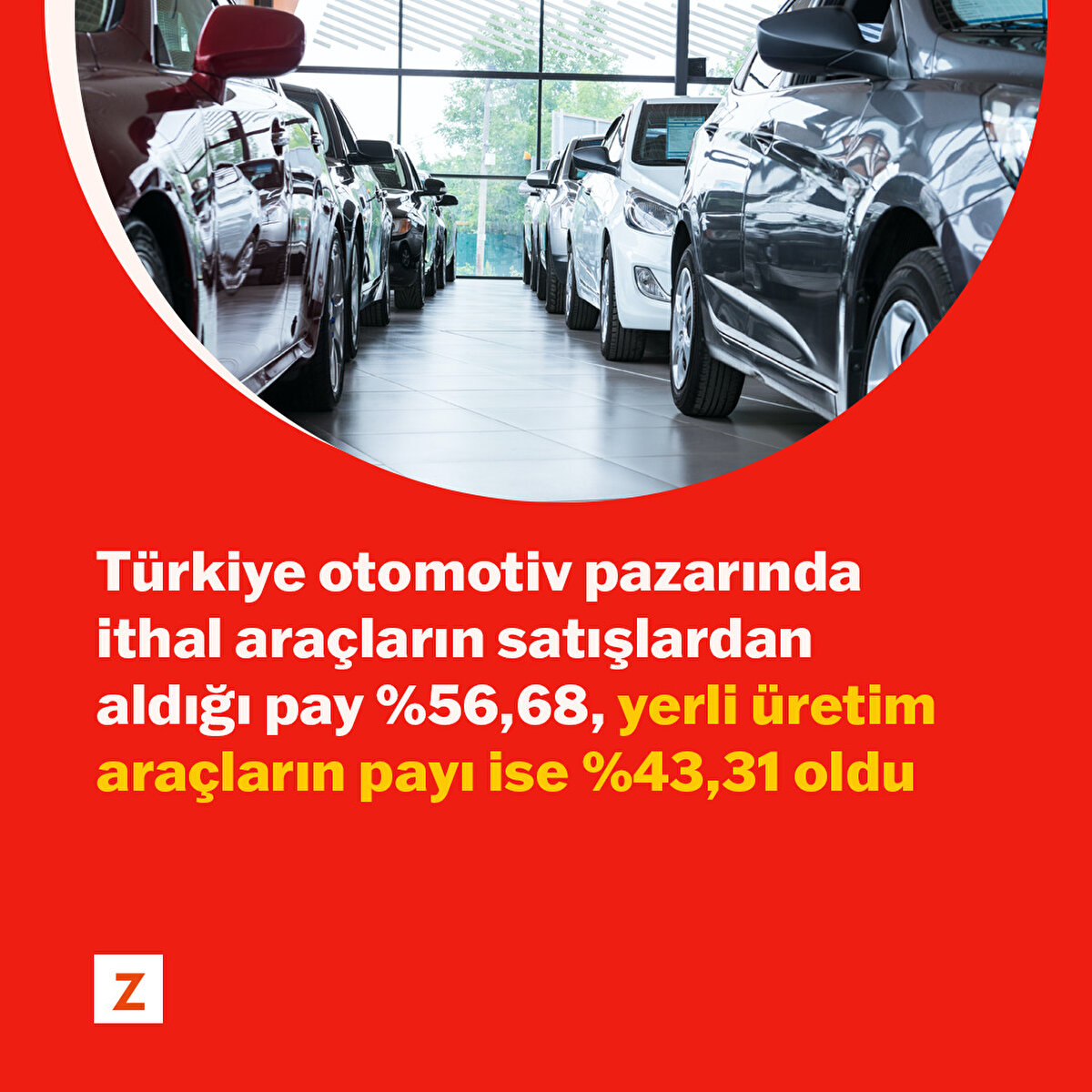 Türkiye otomotiv pazarında ithal araçların satışlardan aldığı pay %56,68, yerli üretim araçların payı ise %43,31 oldu.