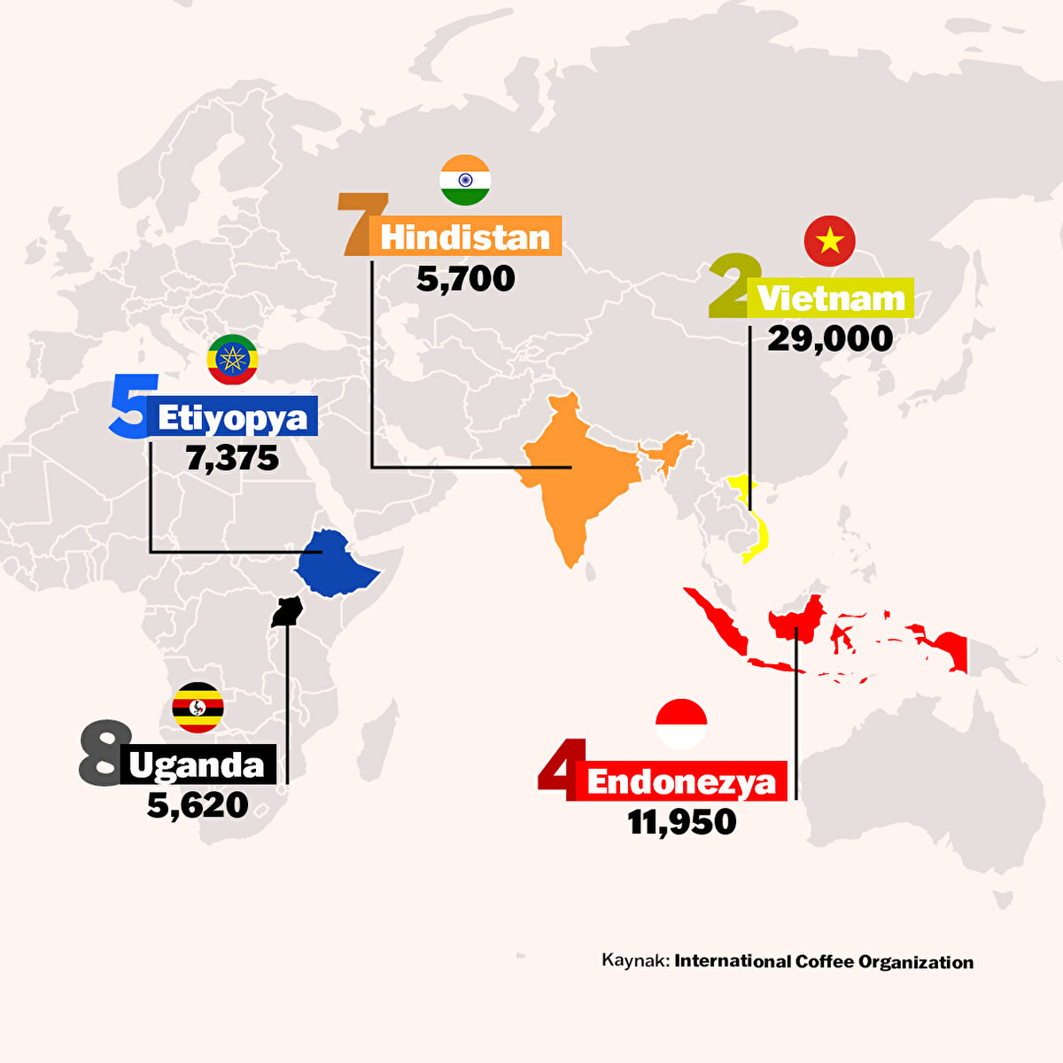 Kim ne kadar kahve üretiyor?
