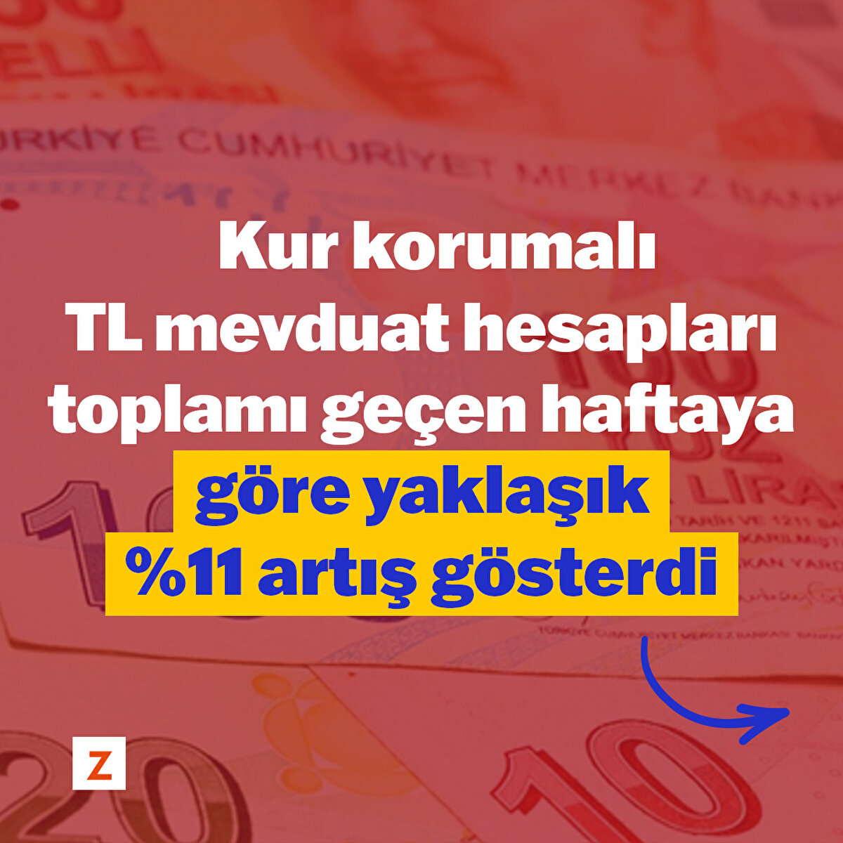 Kur korumalı TL mevduat hesapları toplamı geçen haftaya göre yaklaşık %11 artış gösterdi