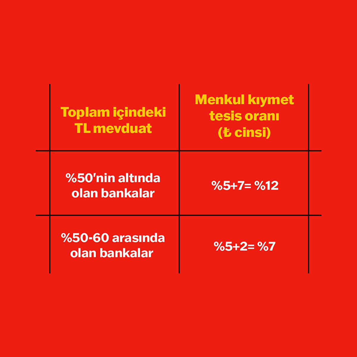 TCMB, 'liralaşma stratejisi' kapsamında bankalar için uyguladığı TL cinsinden menkul kıymet tesisi oranını %3'ten %5'e çıkardı. Bu hamlenin amacı bankaların daha fazla TL cinsi varlık bulundurmasını sağlamak. Ayrıca toplam mevduat içinde TL'nin payının artması için dönüşüm oranında da artışa gidildi. Böylece TL mevduatı %50'nin altında olan bankalar ilave 7, %50-60 arasında olan bankalar ise ilave 2 puan TL cinsi varlık alacak.