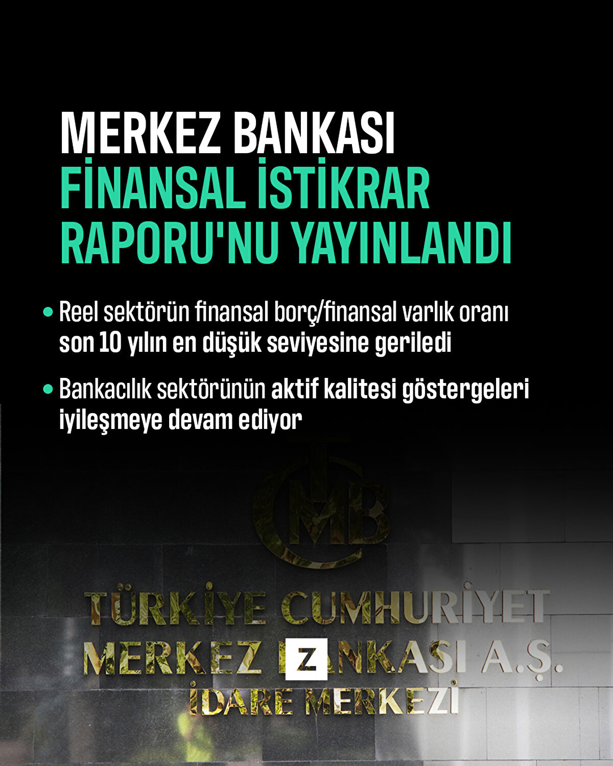 Türkiye Cumhuriyet Merkez Bankası (TCMB) Finansal İstikrar Raporu'nda, bankacılık sektörünün aktif kalitesi göstergelerinin iyileşmeye devam ettiği ve bankaların fonlama kompozisyonunda dış borçların payının tarihi düşük seviyelere gerilerken mevduatın ağırlığının artmayı sürdürdüğü bildirildi.