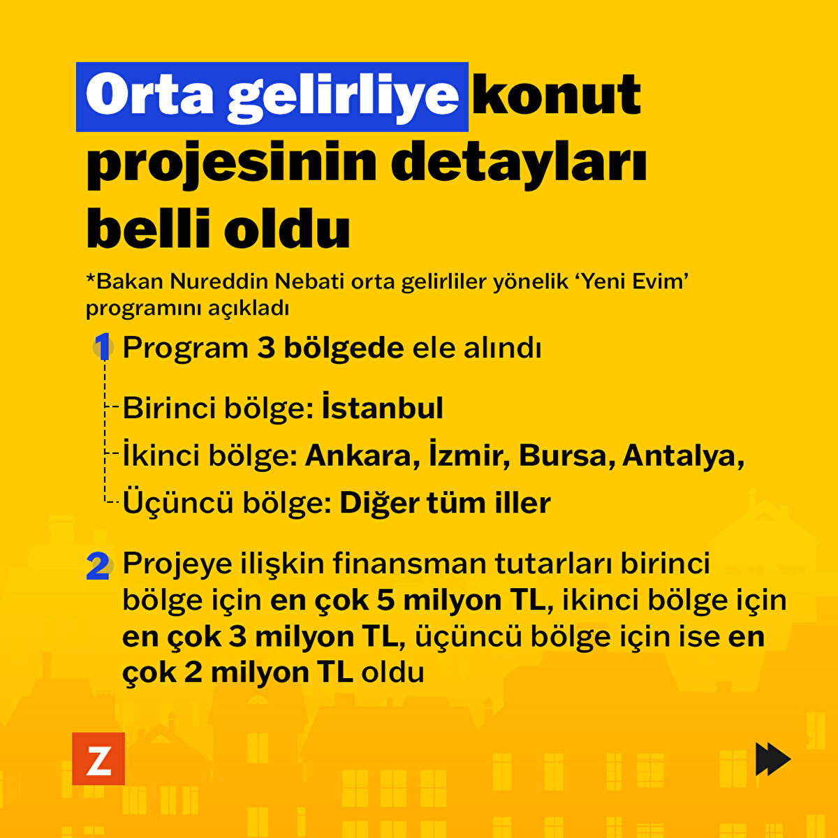 Orta gelirliye konut paketinin detayları belli oldu