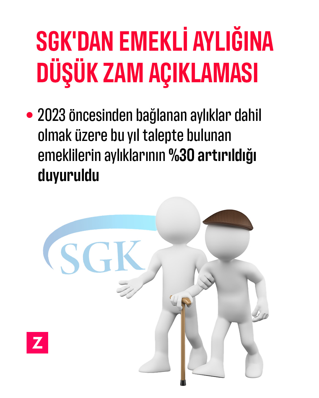 Sosyal Güvenlik Kurumu (SGK), 2023 yılı öncesinden bağlanan aylıklar dahil olmak üzere 2023 yılı talepte bulunan emeklilerin aylıklarının da yüzde 30 oranında artırıldığını duyurdu. Açıklamada, "Aylık hesaplama sisteminde bir değişiklik yapılmamış, mevcut yasal düzenlemelerde yer alan kurallar çerçevesinde aylıklar hesaplanmaktadır. Ayrıca, EYT kapsamındaki sigortalılar için farklı bir aylık hesabı yapılmayacak hem TÜFE hem de refah payı dikkate alınarak aylıklar ödenecektir" denildi.