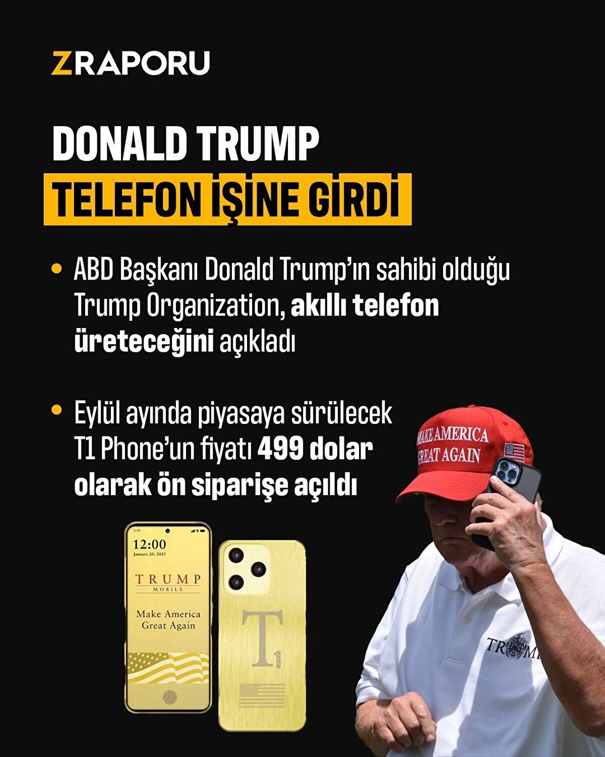Donald Trump artık bir telefon üreticisi Eylül ayında 499 dolar fiyatla piyasa sürülecek olan telefonun detaylarını yana kaydırarak öğrenebilirsiniz