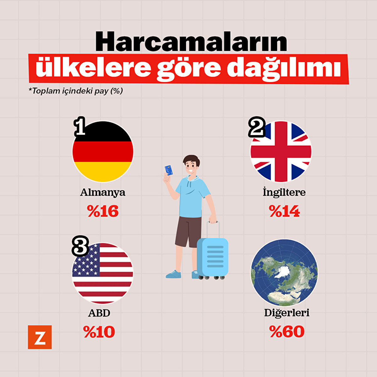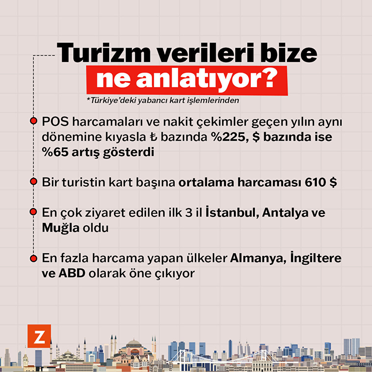 Türkiye'deki hem POS harcamaları hem nakit çekimler geçen yılın aynı dönemine kıyasla TL bazında yüzde 225, dolar bazında ise yüzde 65 artış gösterdi. Bir turistin kart başına ortalama harcaması 610 dolar olarak gerçekleşti.