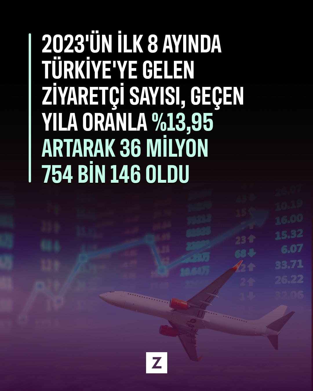 Kültür ve Turizm Bakanlığı verilerine göre, Türkiye'ye gelen yabancı ziyaretçi sayısında yüzde 13,95 artış yaşandı