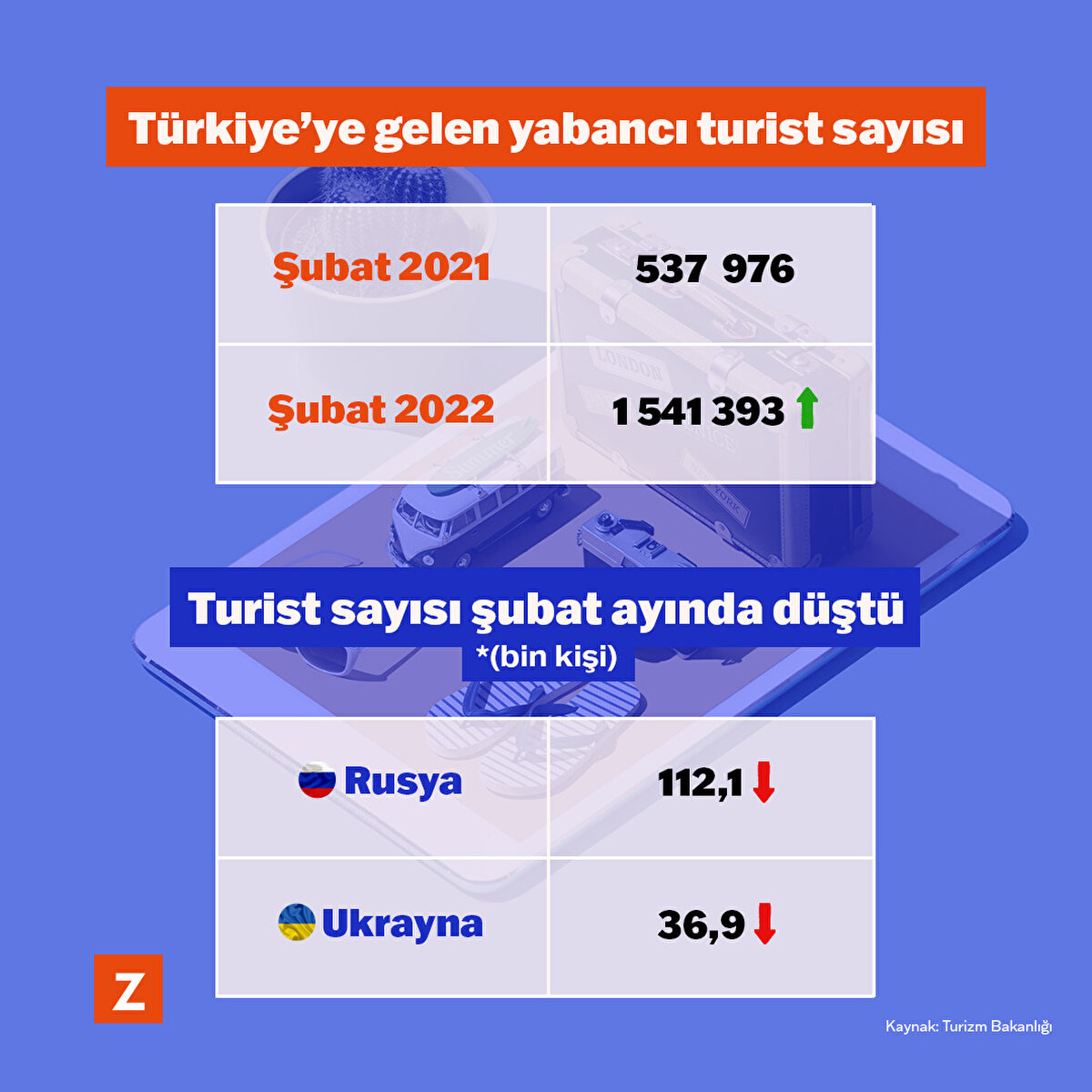 Türkiye’ye gelen yabancı turist sayısı arttı