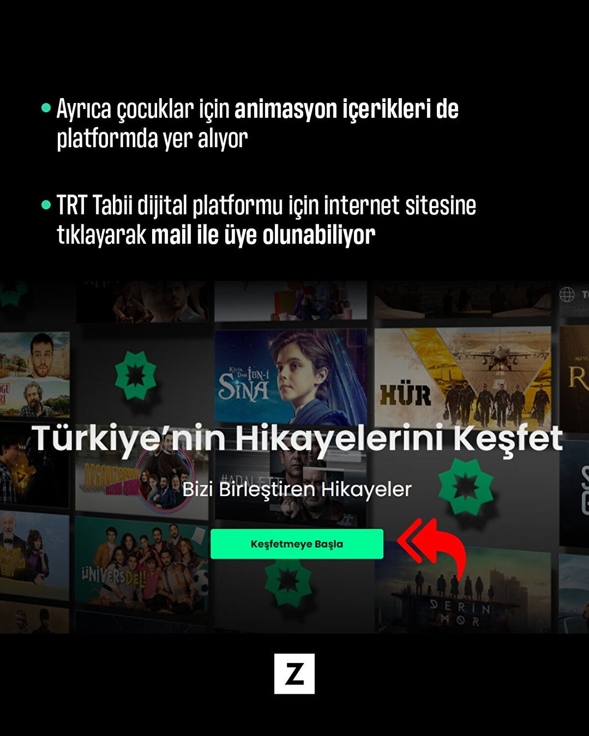 TRT'nin dijital platformu 'Tabii', dünyadaki aile odaklı içerik ihtiyacını karşılayacak öncelikli mecra olmayı hedefliyor. Yüksek kaliteli yayın, altyazı ve dublaj seçenekleriyle birlikte birçok içerik üretilecek platform, aksiyondan komediye, tarihi dramadan animasyona kadar her çeşit film ve diziyi izleyiciyle buluşturuyor.