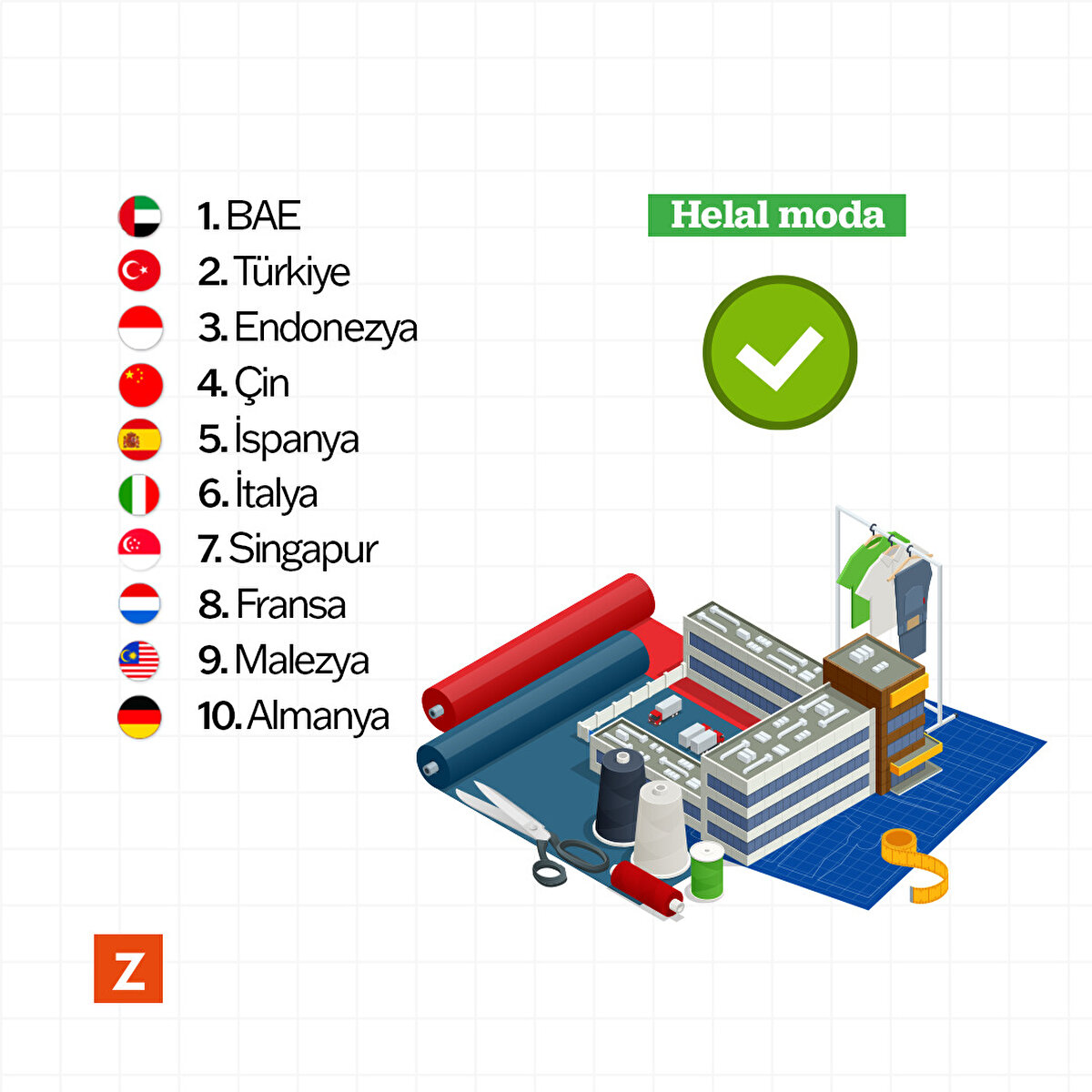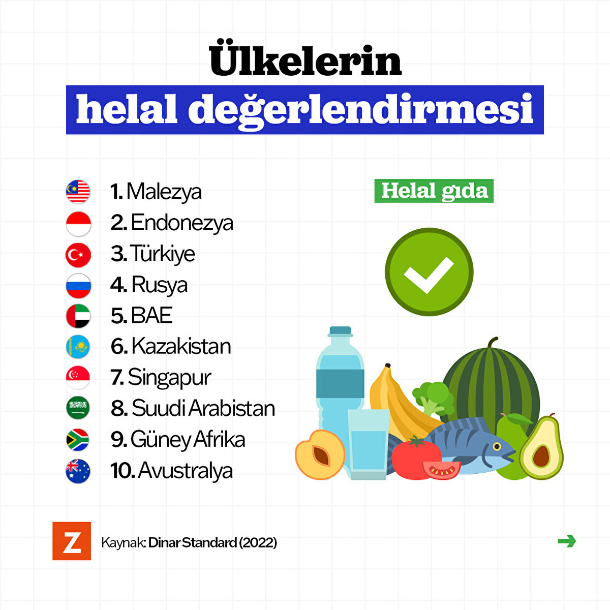 Küresel İslami Ekonomi Göstergesi (GIEI) hesaplamalarına göre Türkiye, genel sıralamada 5., helal gıdada 3., helal modada 2., helal turizmde 3., helal ilaç ve kozmetikte ise 7. sırada yer almaktadır. Öte yandan, İslami finansta Türkiye 12. sırada yer almaktadır.