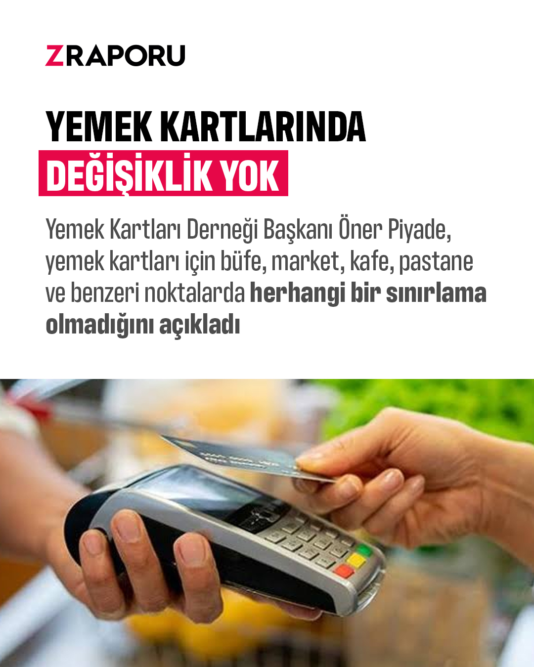 📌Yemek Kartları Derneği Başkanı Öner Piyade, SGK'nın son düzenlemeyle birlikte yemek kartlarında prim ödemesini kaldırarak kartların büfe, restoran, market vb yerlerde kullanımında bir sınırlama olmadığını açıkladı