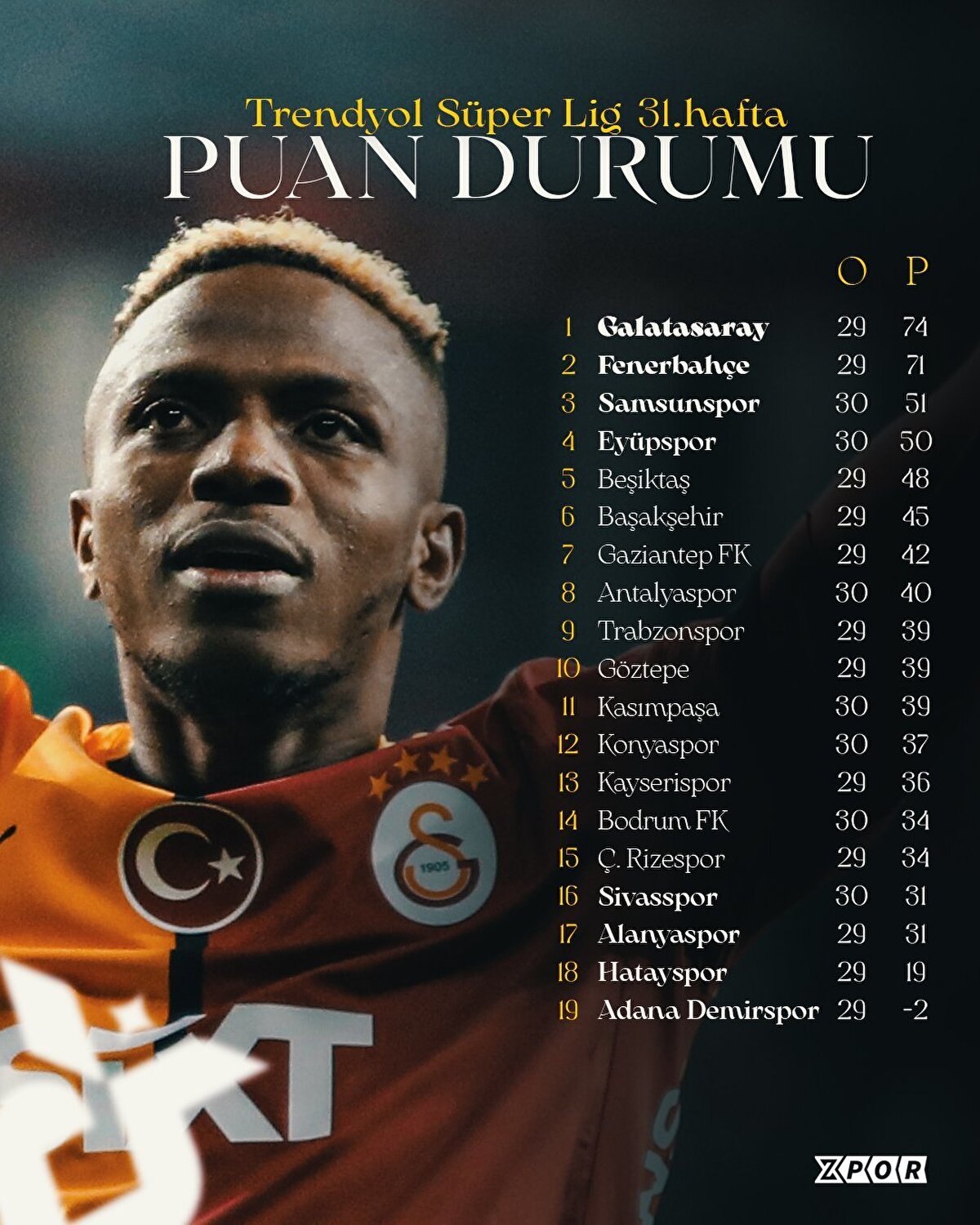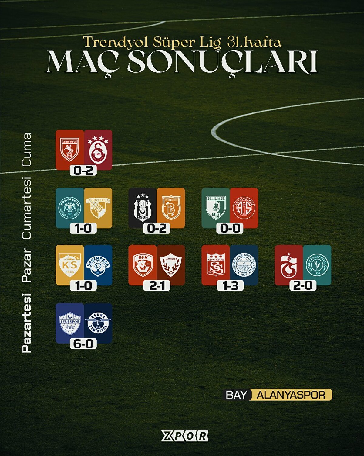 Süper Lig'de 31. haftanın sonuçları ve güncel puan durumu...