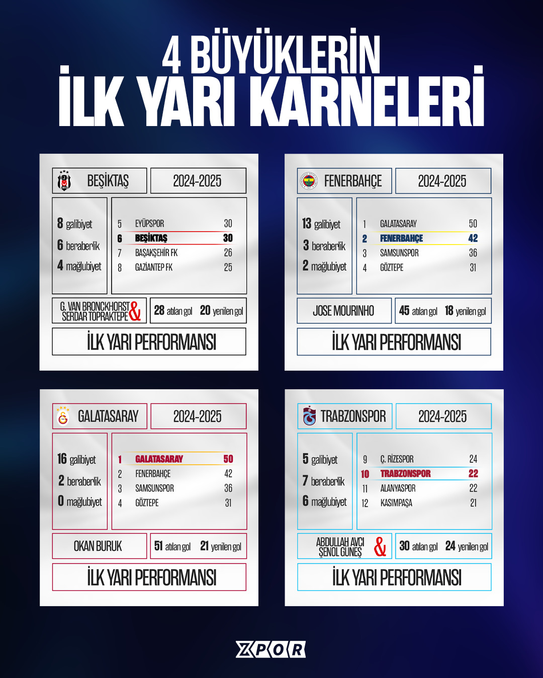 4 büyüklerin ligin ilk yarısındaki karneleri