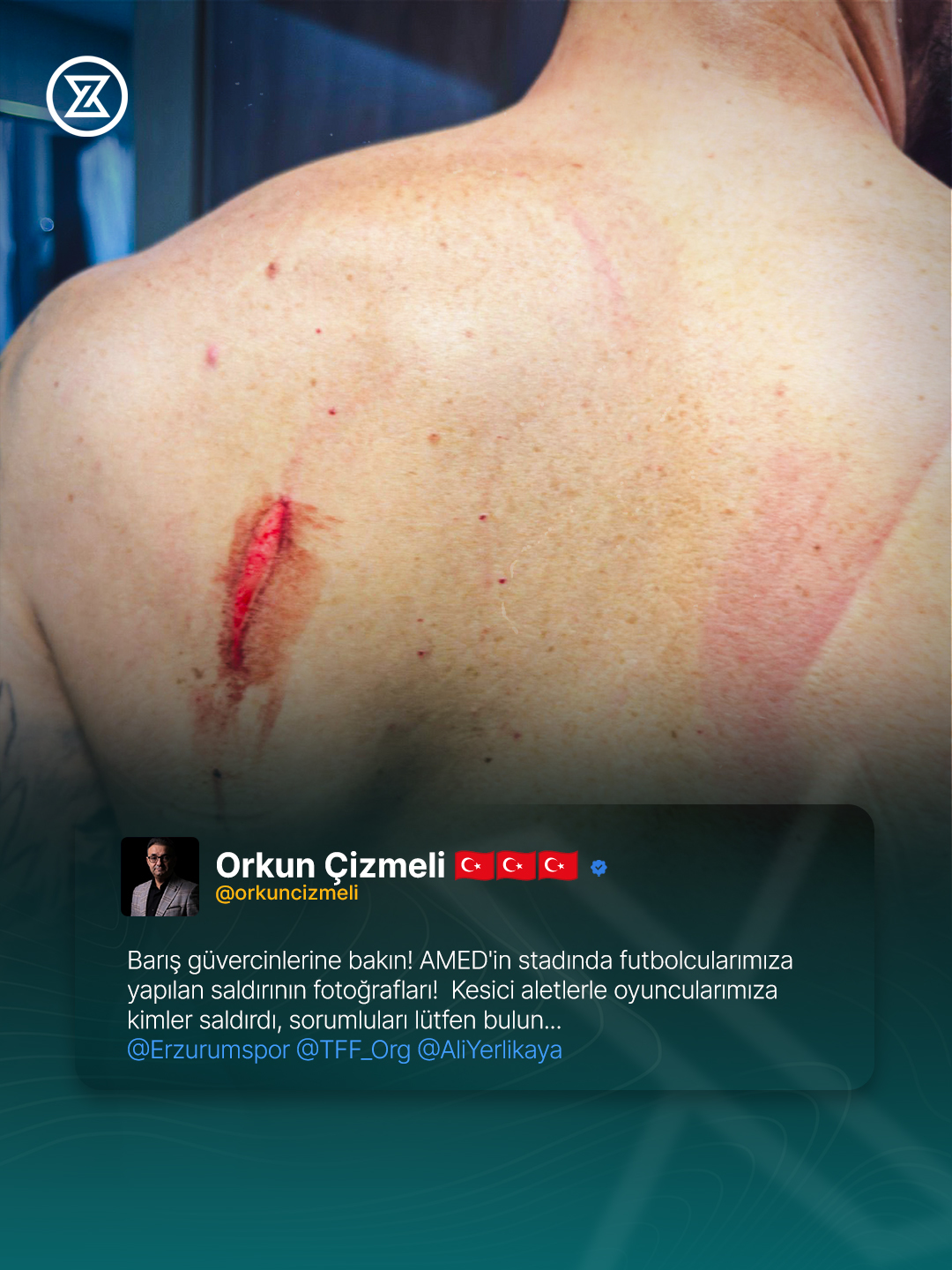 Erzurumspor Kongre Üyesi Orkun Çizmeli, Eren Tozlu'nun sırtının son halini sosyal medyadan paylaştı ve yapılanlara isyan etti.