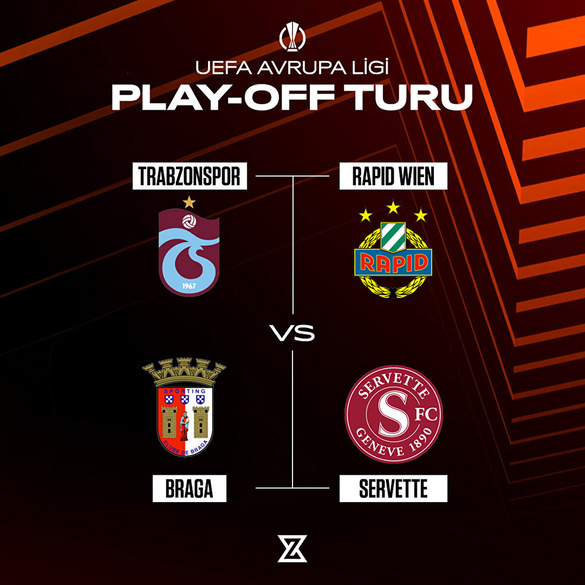Trabzonspor ise, Rapid Wien'i elerse UEFA Avrupa Ligi play-off turunda Braga-Servette eşleşmesinin galibiyle karşılaşacak.