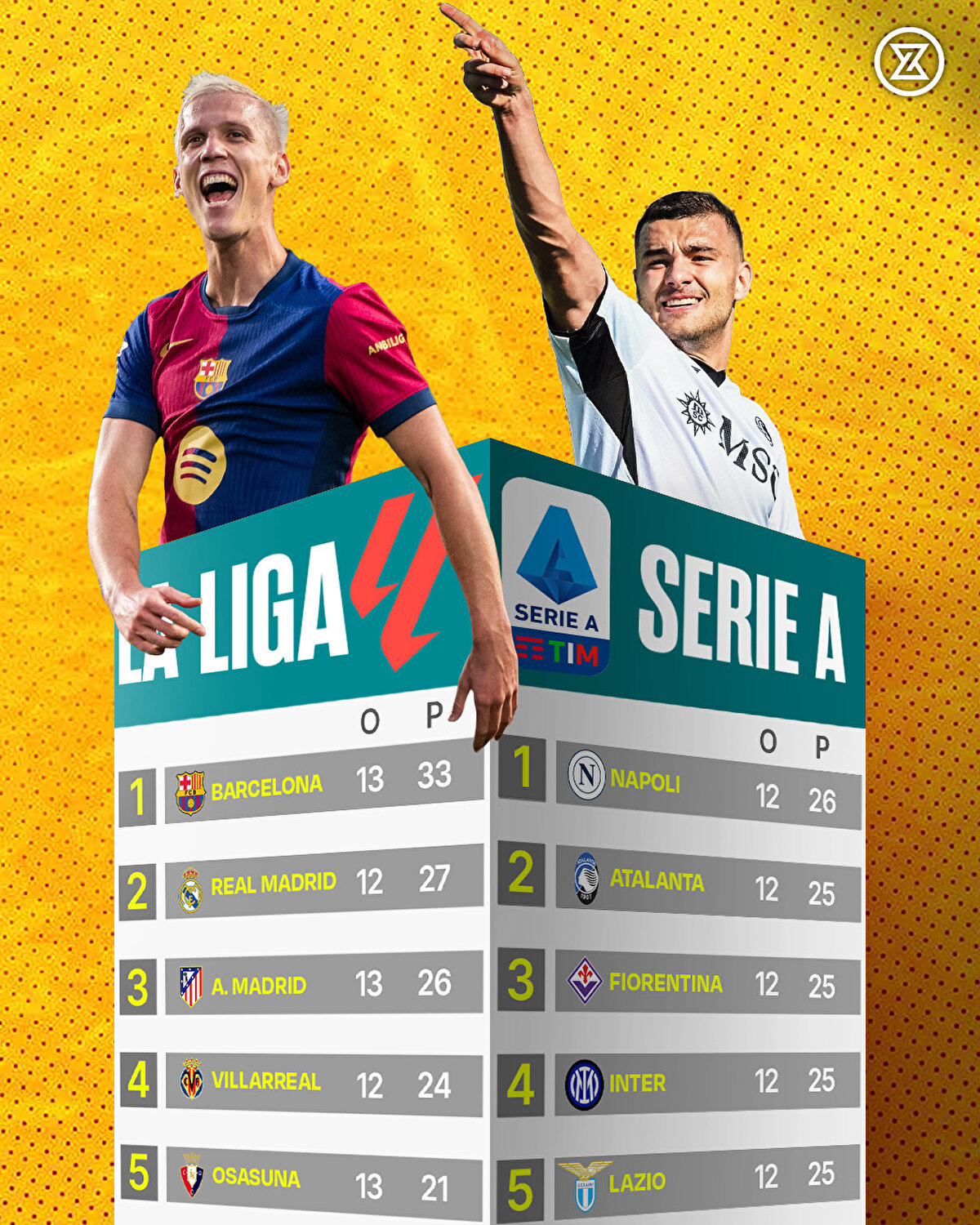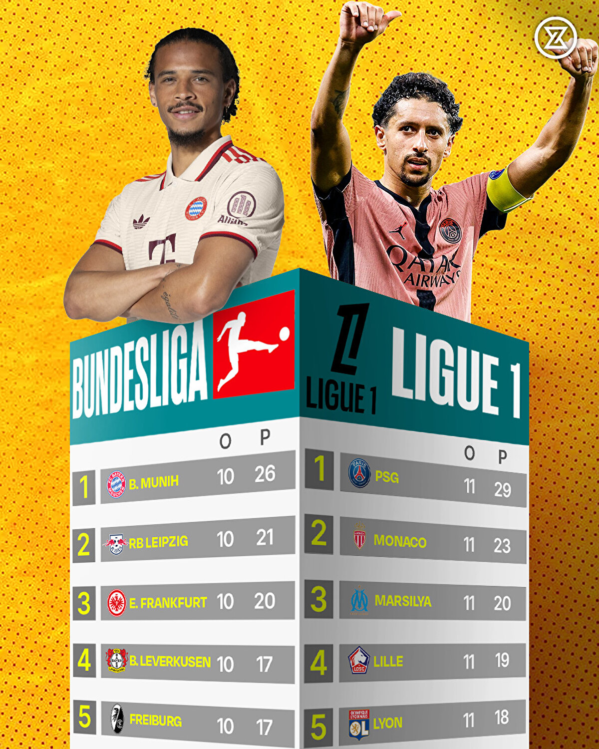 Süper Lig'de Galatasaray, Premier Lig'de Liverpool, La Liga'da Barcelona, Serie A'da Napoli, Bundesliga'da Bayern Münih, Lig 1'de Paris Saint Germain milli araya lider girdi.