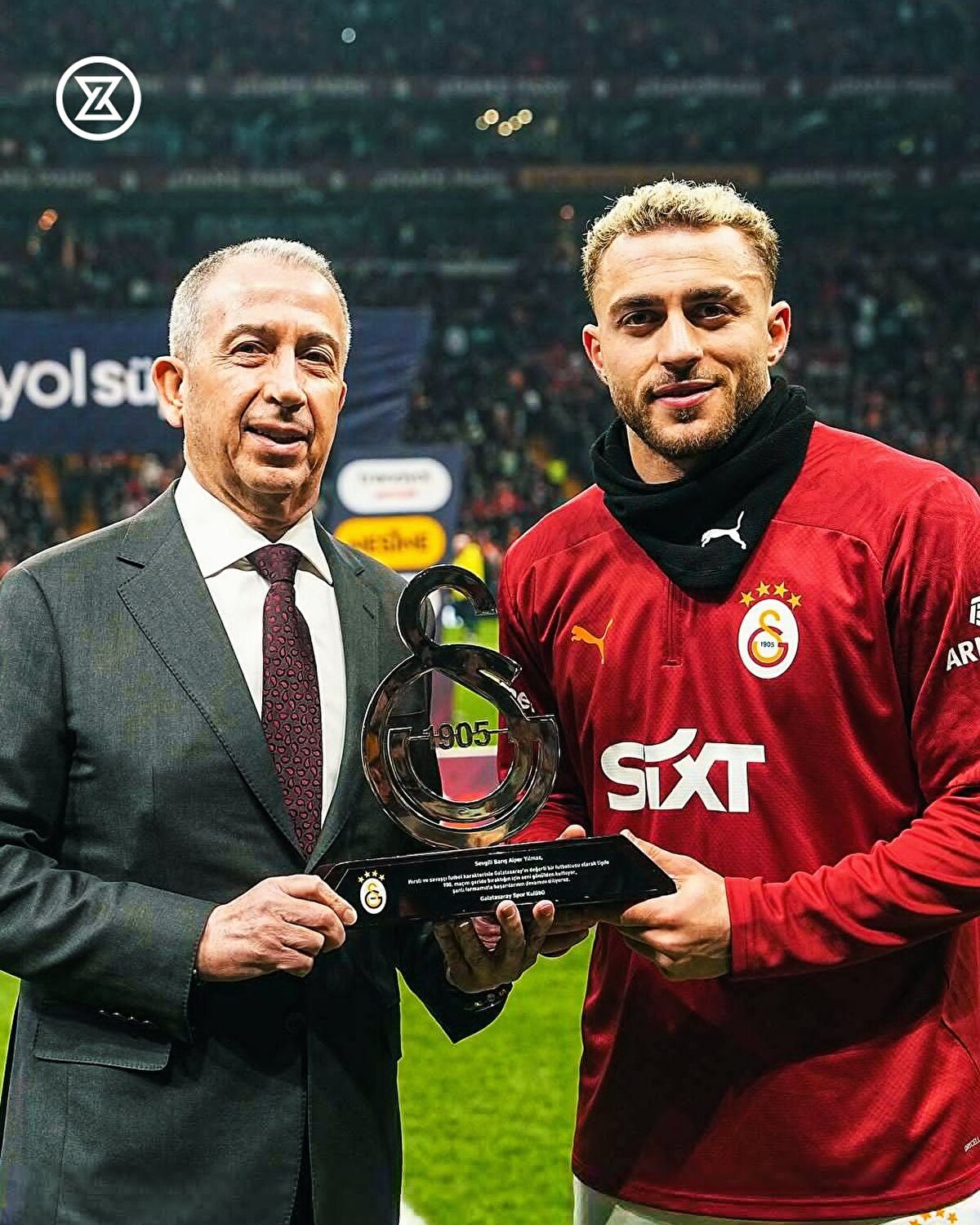 Derbi öncesinde Galatasaray formasıyla ligde 100. maçına çıkan Barış Alper Yılmaz'a plaket verildi