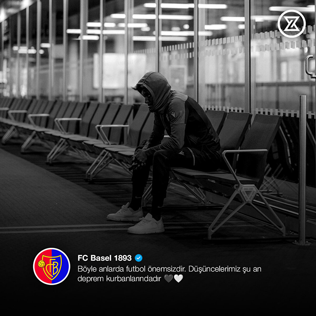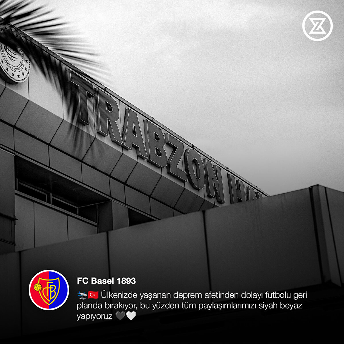 Basel Kulübü, Trabzon Havaalanı'ndan yaptıkları paylaşımda "Ülkenizde yaşanan deprem afetinden dolayı futbolu geri planda bırakıyor, bu yüzden tüm paylaşımlarımızı siyah beyaz yapıyoruz." ifadelerini kullandı.