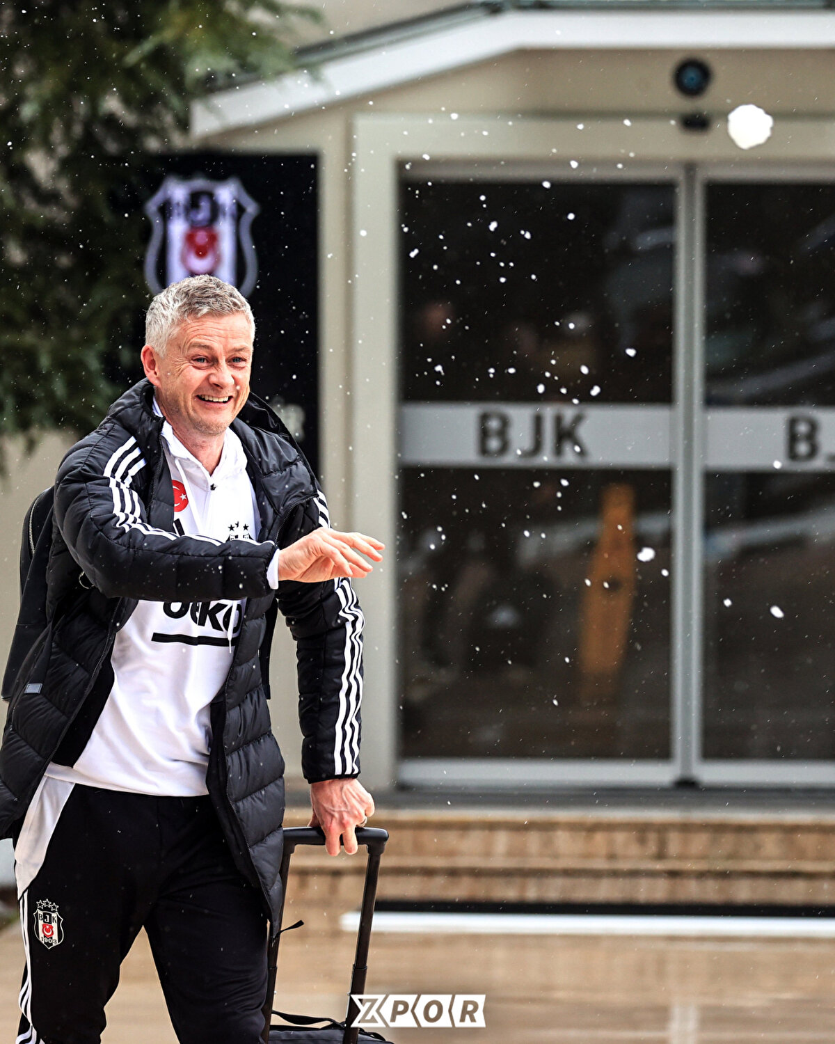 Beşiktaş Teknik Direktörü Ole Gunnar Solskjær, karın tadını çıkarıyor.