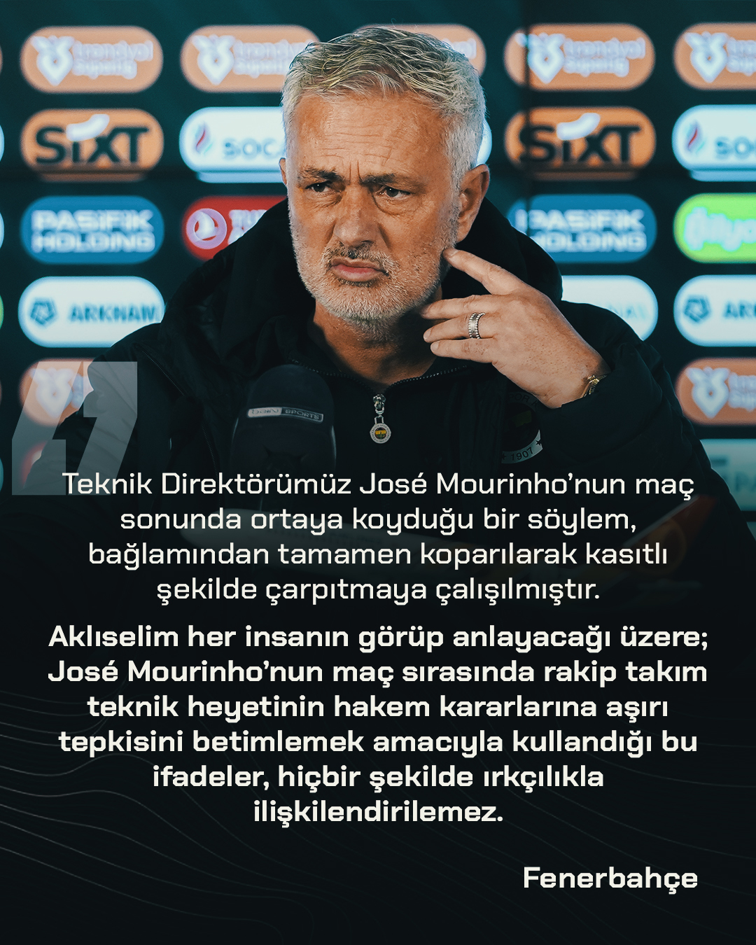 Galatasaray cephesi maçın ardından Mourinho'nun yaptığı açıklamaları hedef almıştı. Mourinho'nun Galatasaray yedek kulübesini kastederek 'Maymun gibi zıpladılar' sözü için Galatasaray 'ırkçılık' açıklaması yaptı. Fenerbahçe Asbaşkanı Acun Ilıcalı, farklı programlara katılarak konunun ırkçılık olmadığını bağlamından koparılarak değerlendirildiğini söyledi. Fenerbahçe de konuyla ilgili açıklama yayınladı.