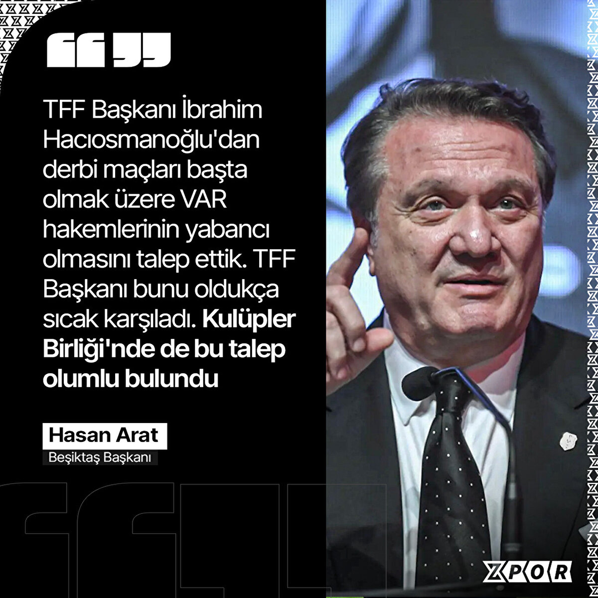 Hasan Arat, yapıdan en çok Beşiktaş'ın muzdarip olduğunu söyledi. Arat, TFF'den VAR hakemlerinin yabancı olmasını talep ettiklerini de dile getirdi.