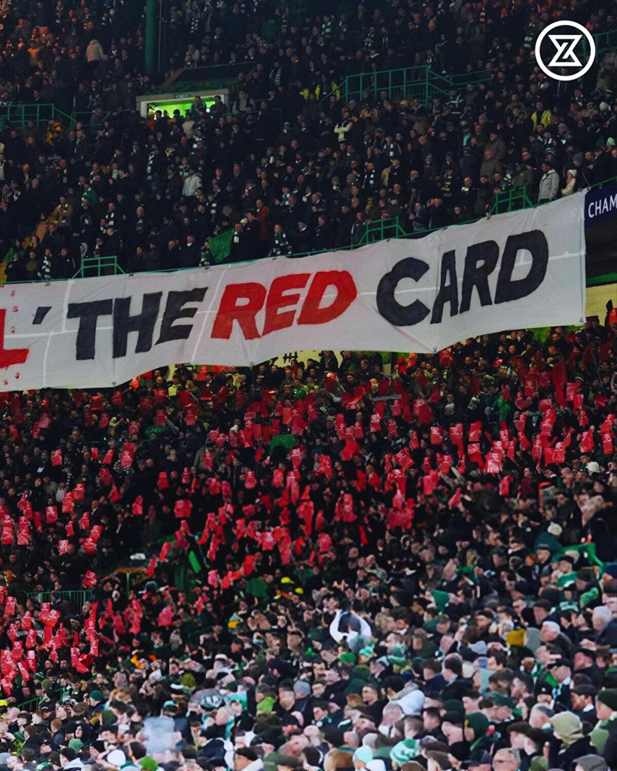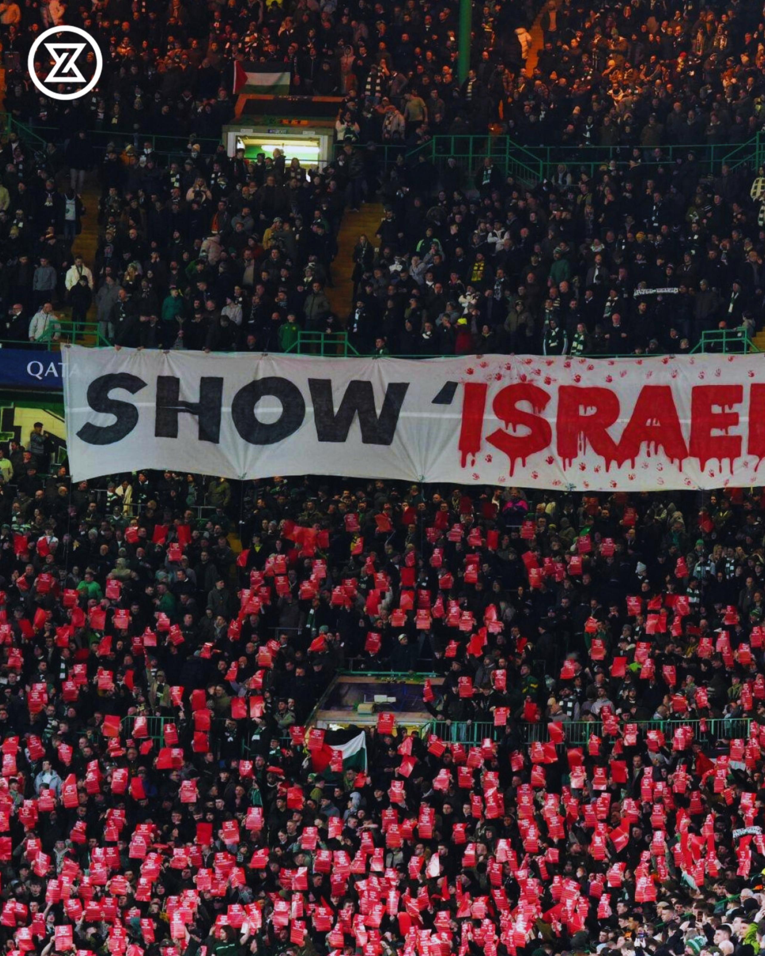 Celtic taraftarı, Şampiyonlar Ligi'nde Bayern Münih'le karşılaştıkları mücadelede bu pankartı açtı: "İsrail'e kırmızı kart göster"