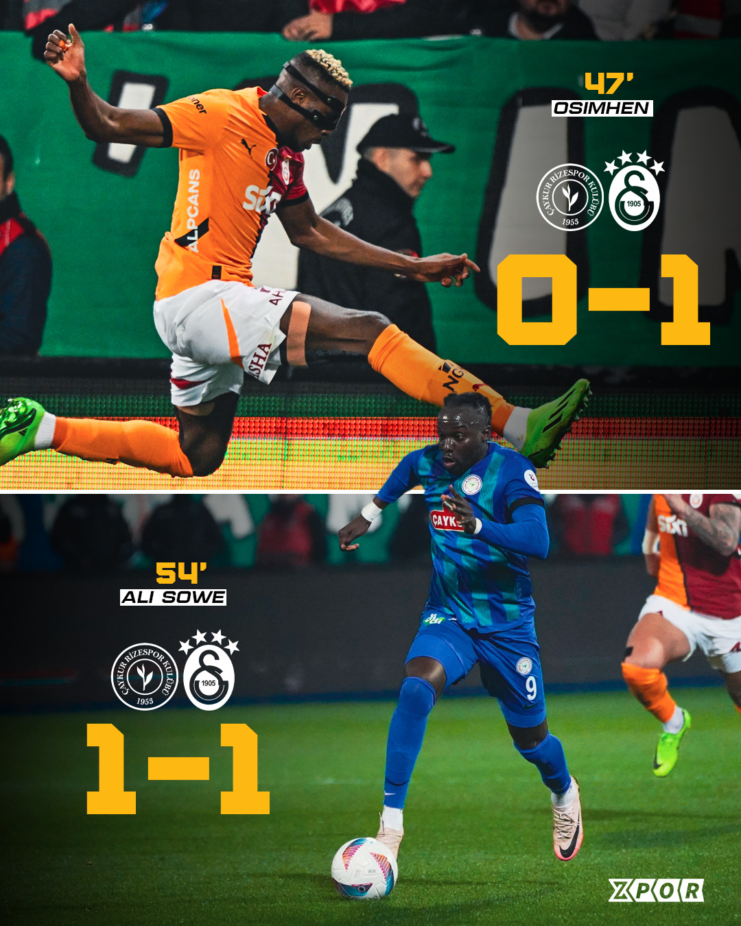 Süper Lig'in 24. haftasında oynanan Çaykur Rizespor-Galatasaray maçının ilk yarısında gol sesi çıkmazken, ikinci yarı karşılıklı gollerle başladı.