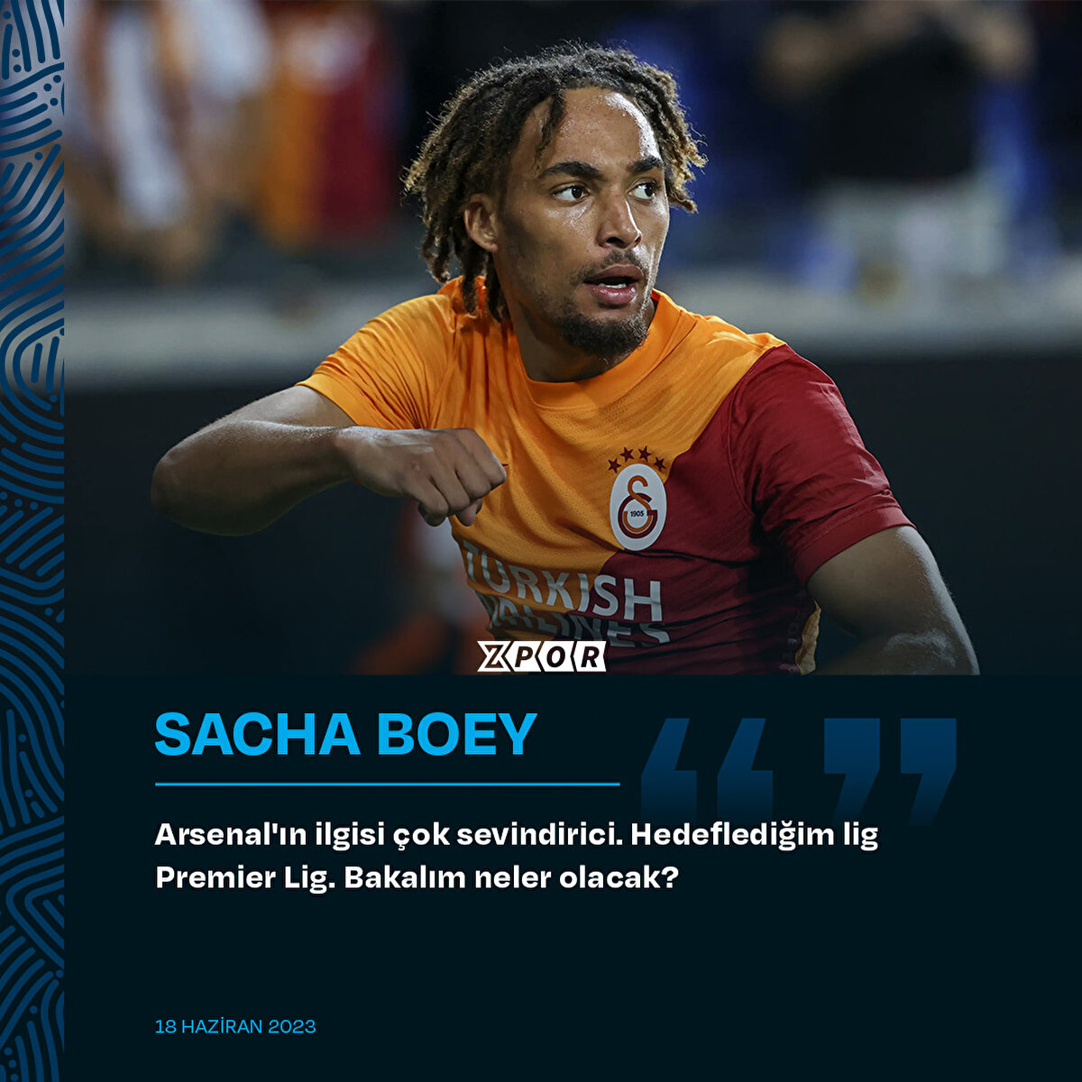 Galatasaray'ın Fransız sağ beki Sacha Boey, sarı kırmızılı kulüpteki geleceğiyle ilgili açıklamada bulundu. 22 yaşındaki futbolcu, Arsenal'ın ilgisinden memnun olduğunu ve hedefinin İngiltere'de oynamak olduğunu söyledi.
