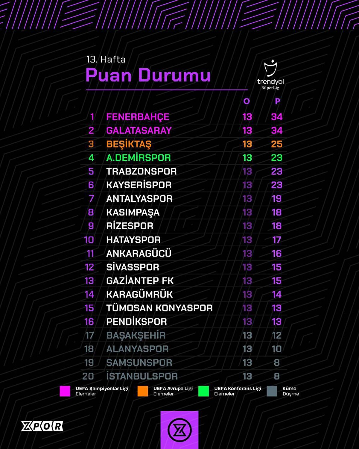 Süper Lig'in 13. haftasında alınan sonuçlar, oluşan puan durumu ve 14. hafta fikstürü