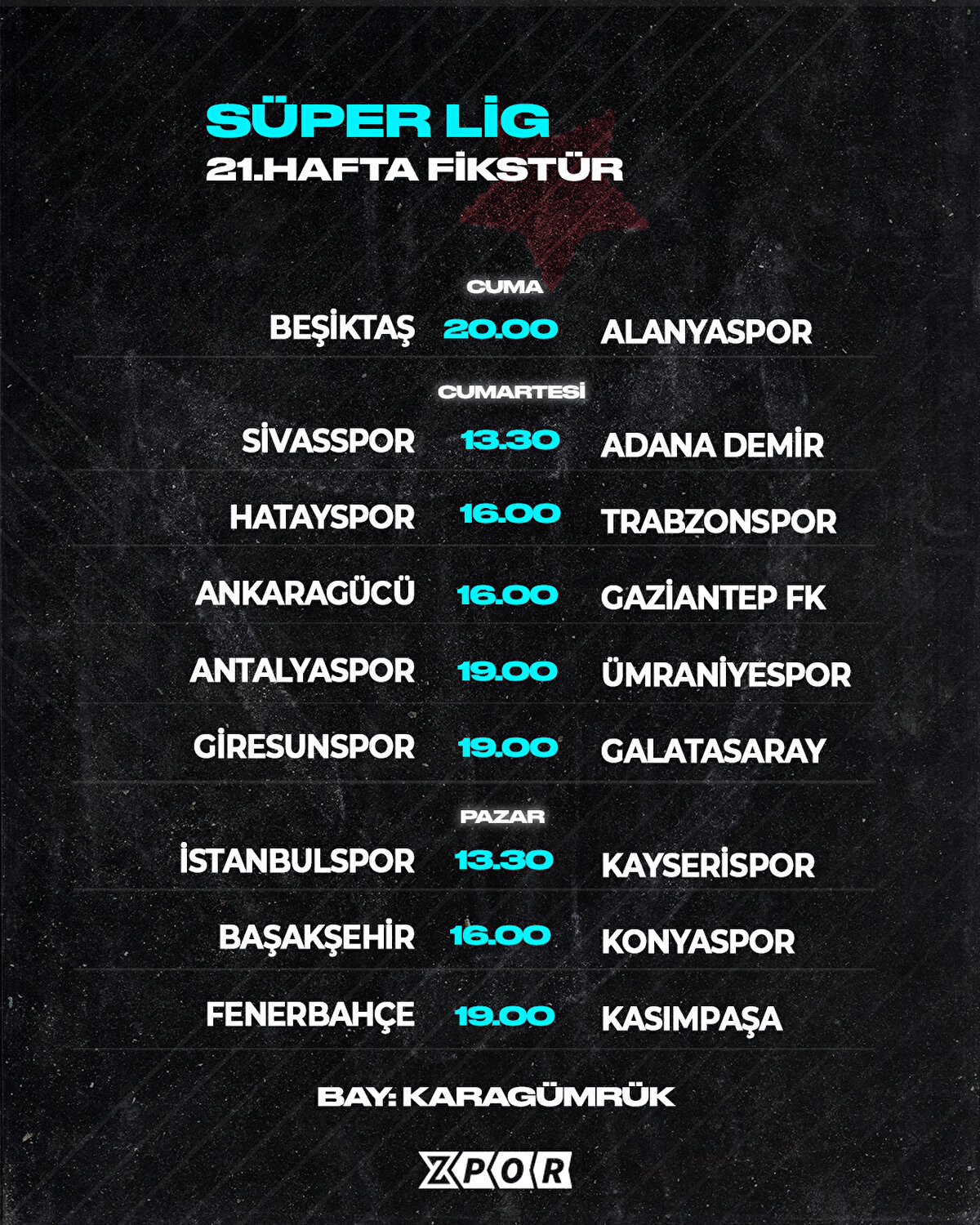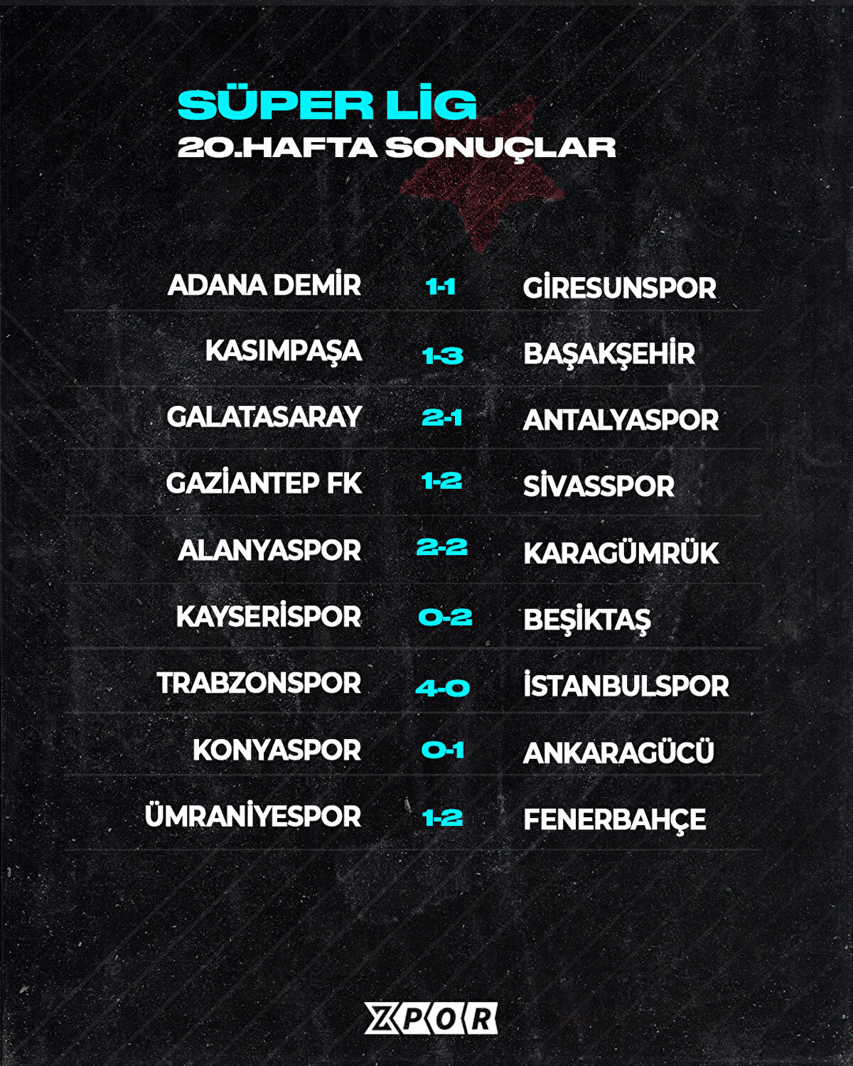 Süper Lig'in 20. haftasında alınan sonuçların ardından Galatasaray liderliğini sürdürdü.
