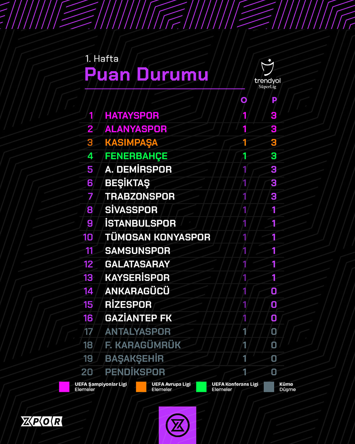 Trendyol Süper Lig'de ilk hafta alınan sonuçlar, oluşan puan durumu ve 2. hafta fikstürü