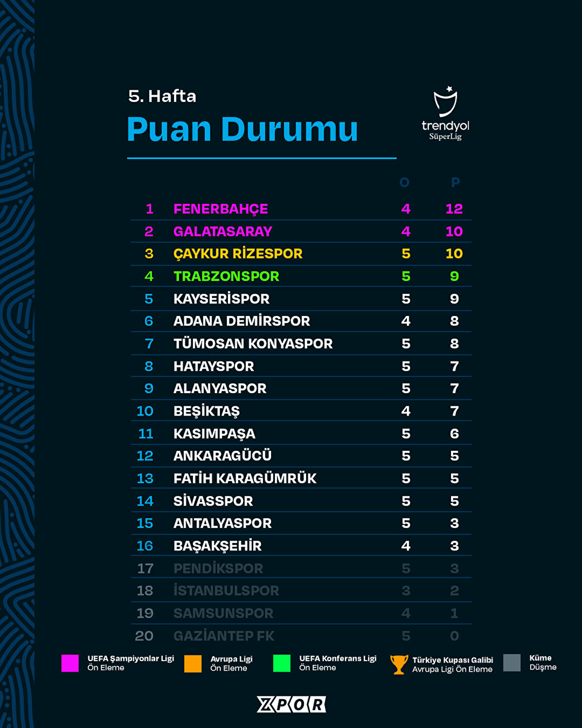 Trendyol Süper Lig’in 5. haftasında alınan sonuçlar, oluşan puan durumu ve 6. hafta fikstürü 👀