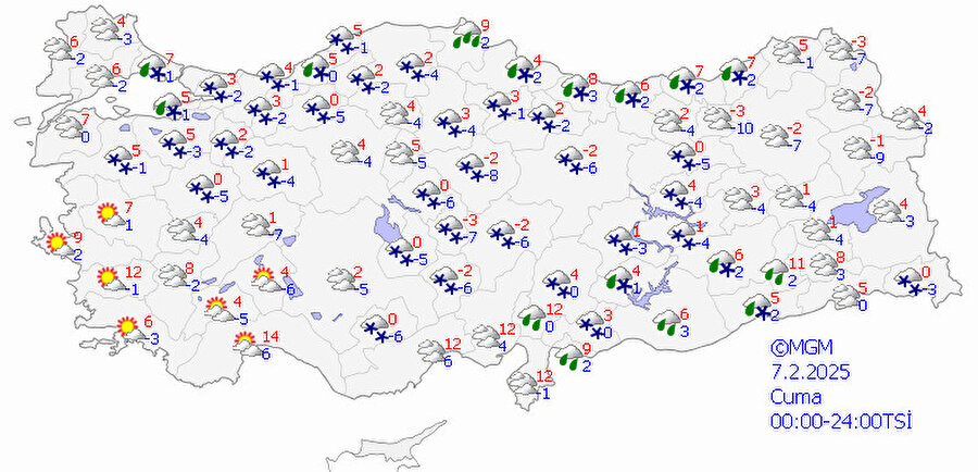 Meteoroloji Genel Müdürlüğü tarafından yapılan tahminlere göre: Ülkemiz genelinin parçalı ve çok bulutlu, Marmara’nın doğusu, İç Anadolu’nun doğusu, Batı ve Orta Karadeniz, Doğu Karadeniz kıyıları, Doğu Anadolu'nun güneybatısı, Güneydoğu Anadolu ile Kahramanmaraş, Osmaniye, Eskişehir, Çankırı, Konya, Muş ve Bitlis çevrelerinin aralıklı karla karışık yağmur ve kar yağışlı geçeceği tahmin ediliyor.