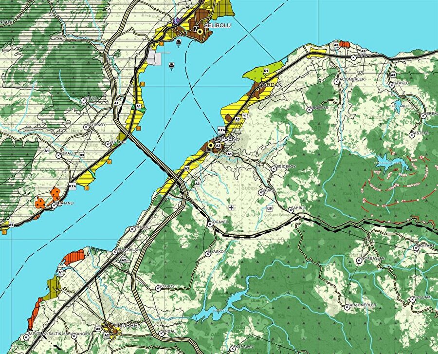 Anadolu yakasındaki Lapseki'nin Şekerkaya ile Avrupa tarafındaki Gelibolu'nun Sütlüce mevkisi arasına yapılacak, dünya çapında proje olarak nitelendirilen dünyanın en uzun aralıklı köprüsü olacak 1915 Çanakkale Köprüsü'nün kara bağlantı noktalarında sondaj yapılıyor.