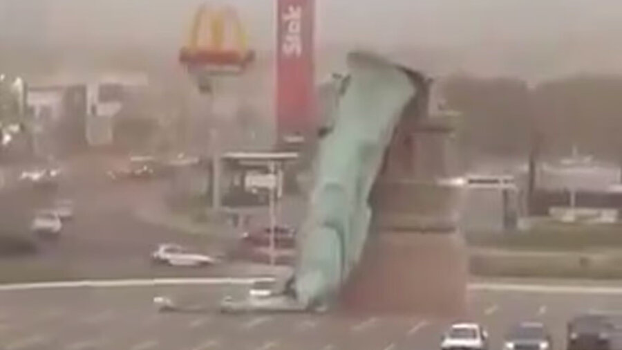 Güney Brezilya’nın Rio Grande do Sul eyaletinde Pazartesi günü etkili olan fırtına, Guaíba kentinde 110ft boyundaki Özgürlük Heykeli replikasının yıkılmasına neden oldu. Görüntülerde heykelin rüzgar nedeniyle bir yana doğru eğildiği ve ardından bir otoparka devrildiği görülüyor. Yetkililer, olayda herhangi bir yaralanma olmadığını açıkladı.