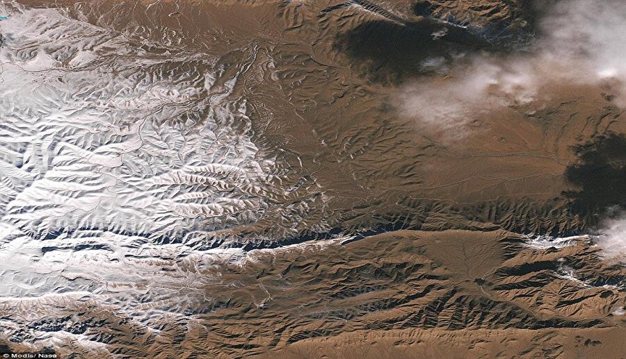19 Aralık'ta yağan kar, ayrıca NASA'nın Aqua ve Terra uydularındaki Orta Seviyeli Çözünürlük Görüntüleme Spektroradiometre cihazları üzerinden de görüntülendi ve kırmızı dalga boylarının daha net görülebilmesi için sahte renklerle işlendi. Aşağıdan da görebileceğiniz üzere karların bulunduğu alan, mavi ve yeşil olacak şekilde renklendirilmiş. İşte hipnotize edici fotoğraflar: