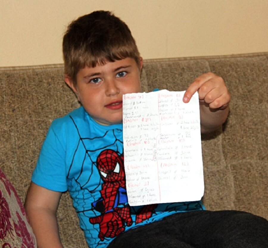Muhammet Emin Doğan ise rahatsızlıkları nedeniyle günde 29 ilaç kullanıyor. Baba ilaçların saatini ve isimlerini bir kağıda not alarak veriyor. Baba Doğan, oğlunu da kendisi okula götürüp getiriyor.