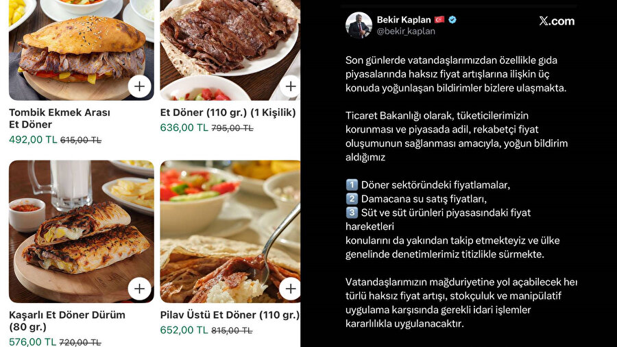 80 gram et dönerin fiyatı sosyal medyada gündem oldu: Fahiş fiyatlar infial yarattı