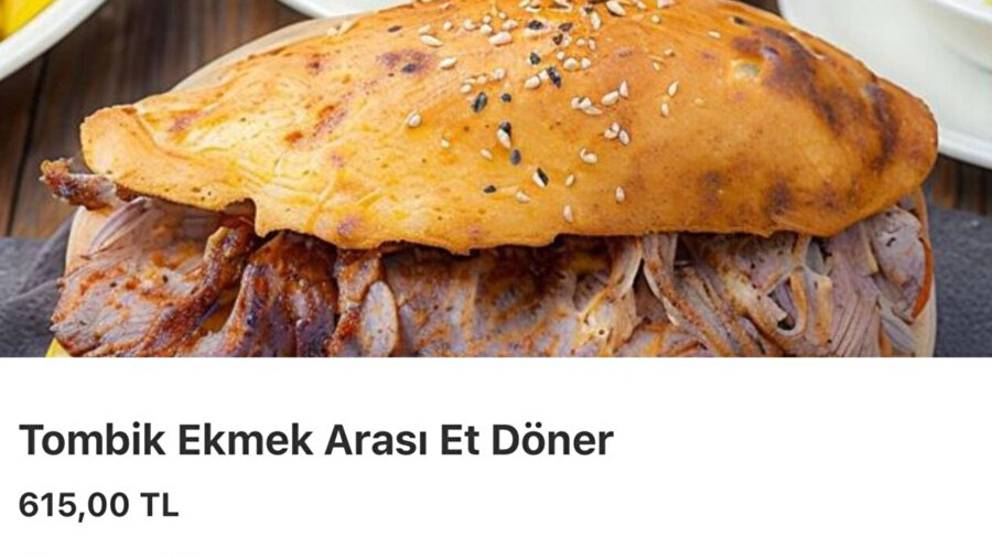 Bir sosyal medya kullanıcısının yaptığı fahiş fiyat paylaşımı sosyal medyada gündem oldu. 80 gram tombik ekmek arası et dönerin satış fiyatını görenler "Yok artık" dedi. Söz konusu dönerin 615 TL'ye satılması tartışmaları da beraberinde getirdi. 80 gram dönerin 1 kilo et fiyatına satılması tepkilere neden oldu.